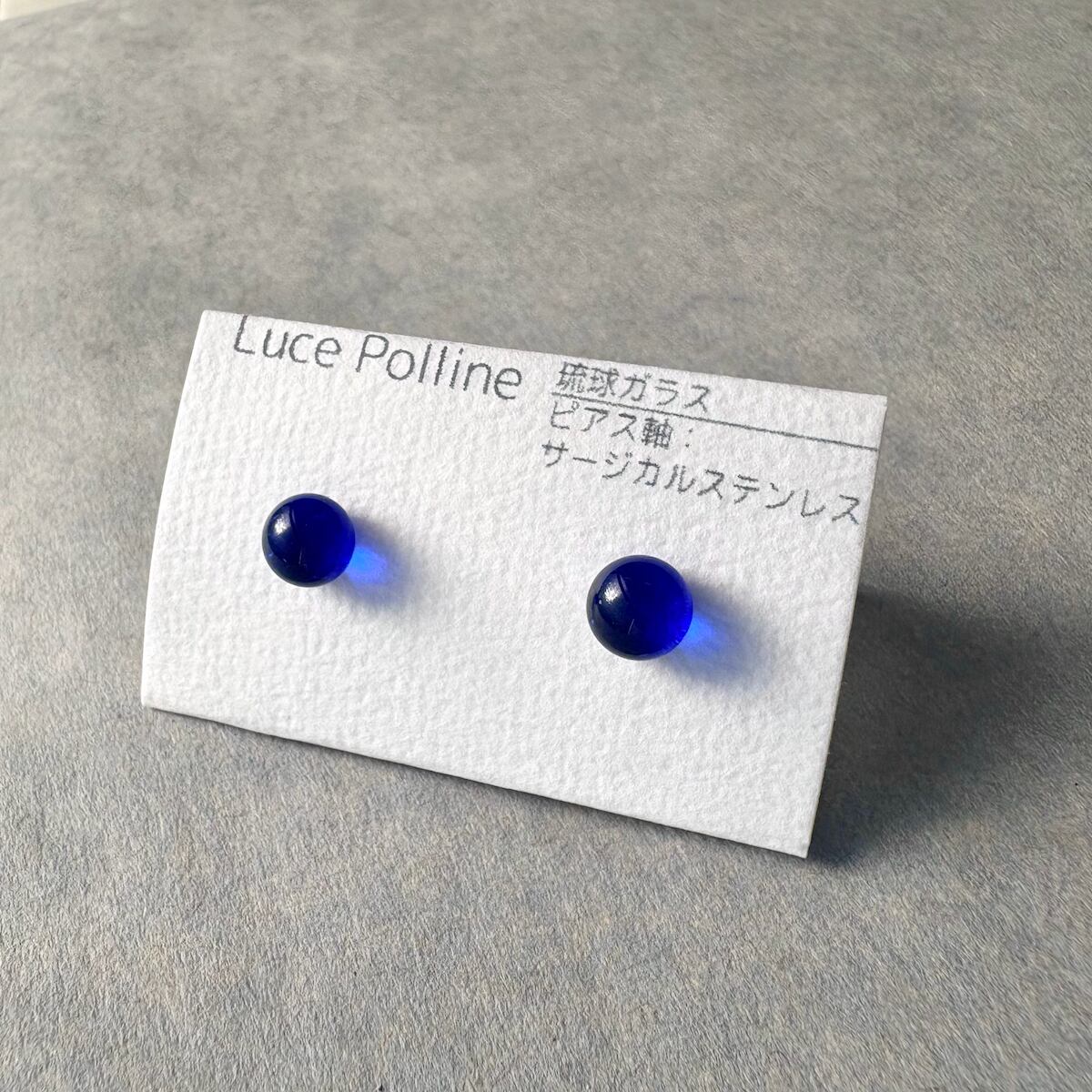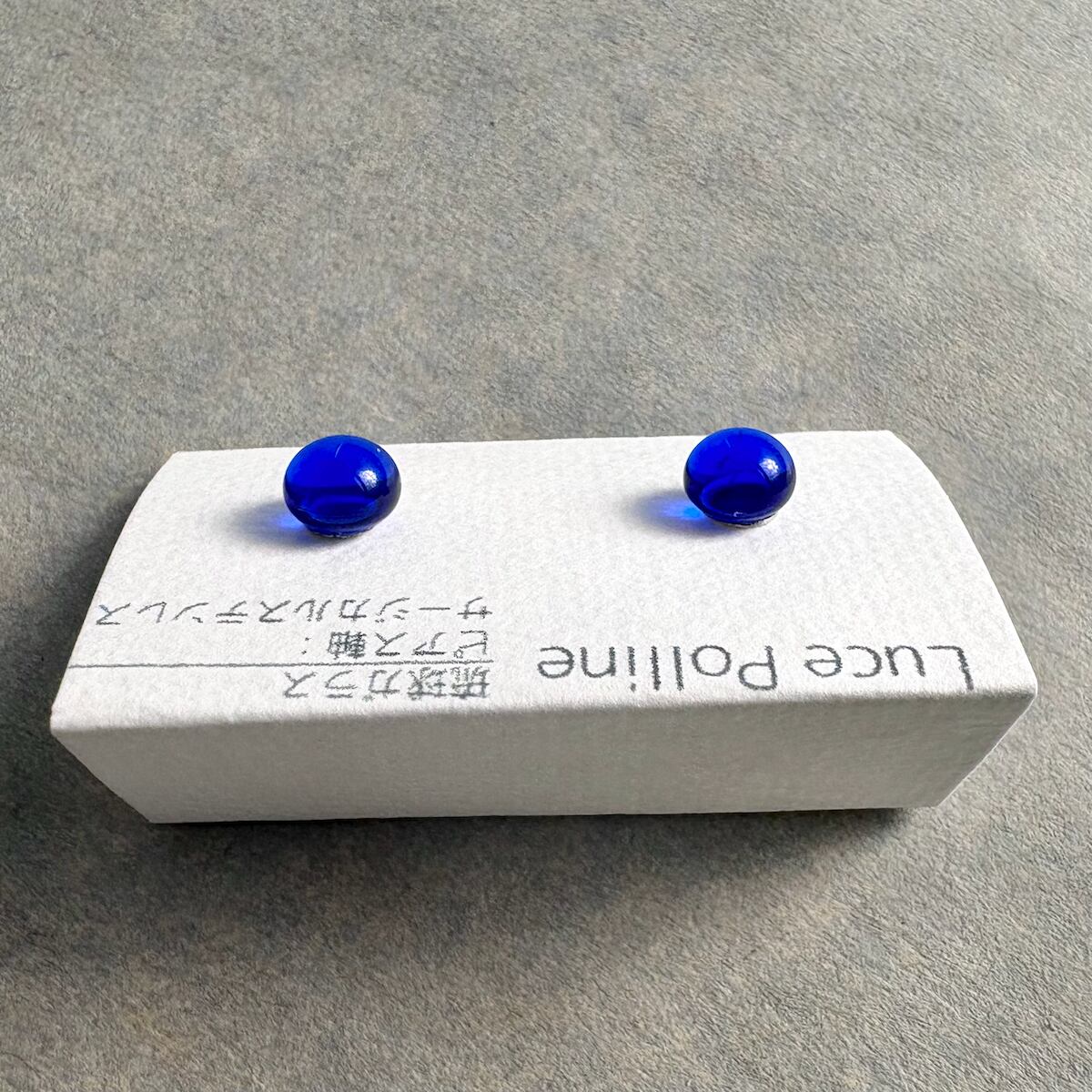 小さめの透明な濃い青の琉球ガラスの粒です。