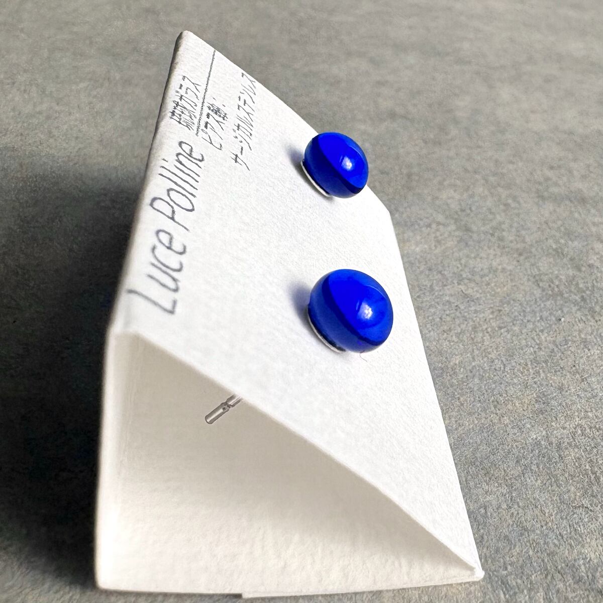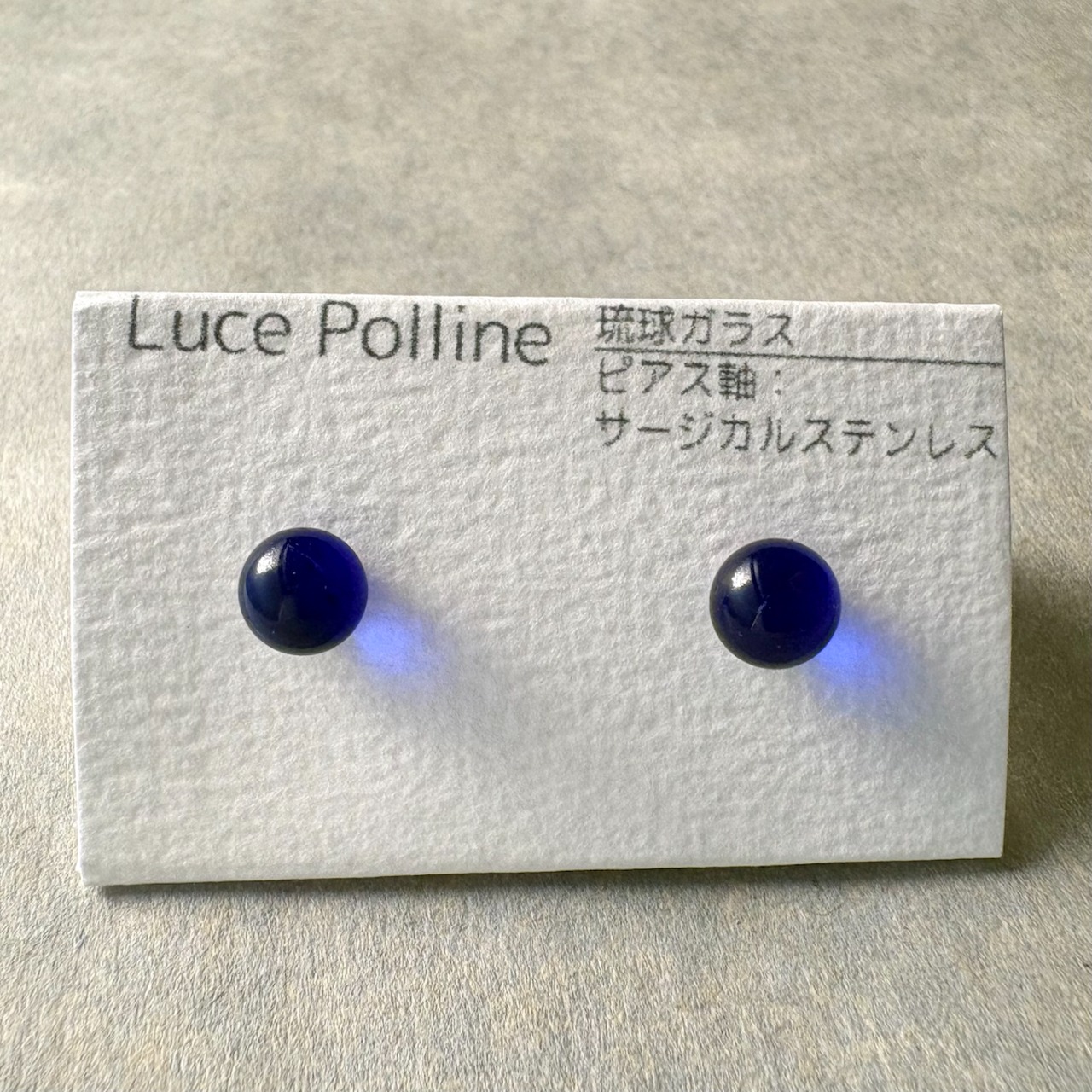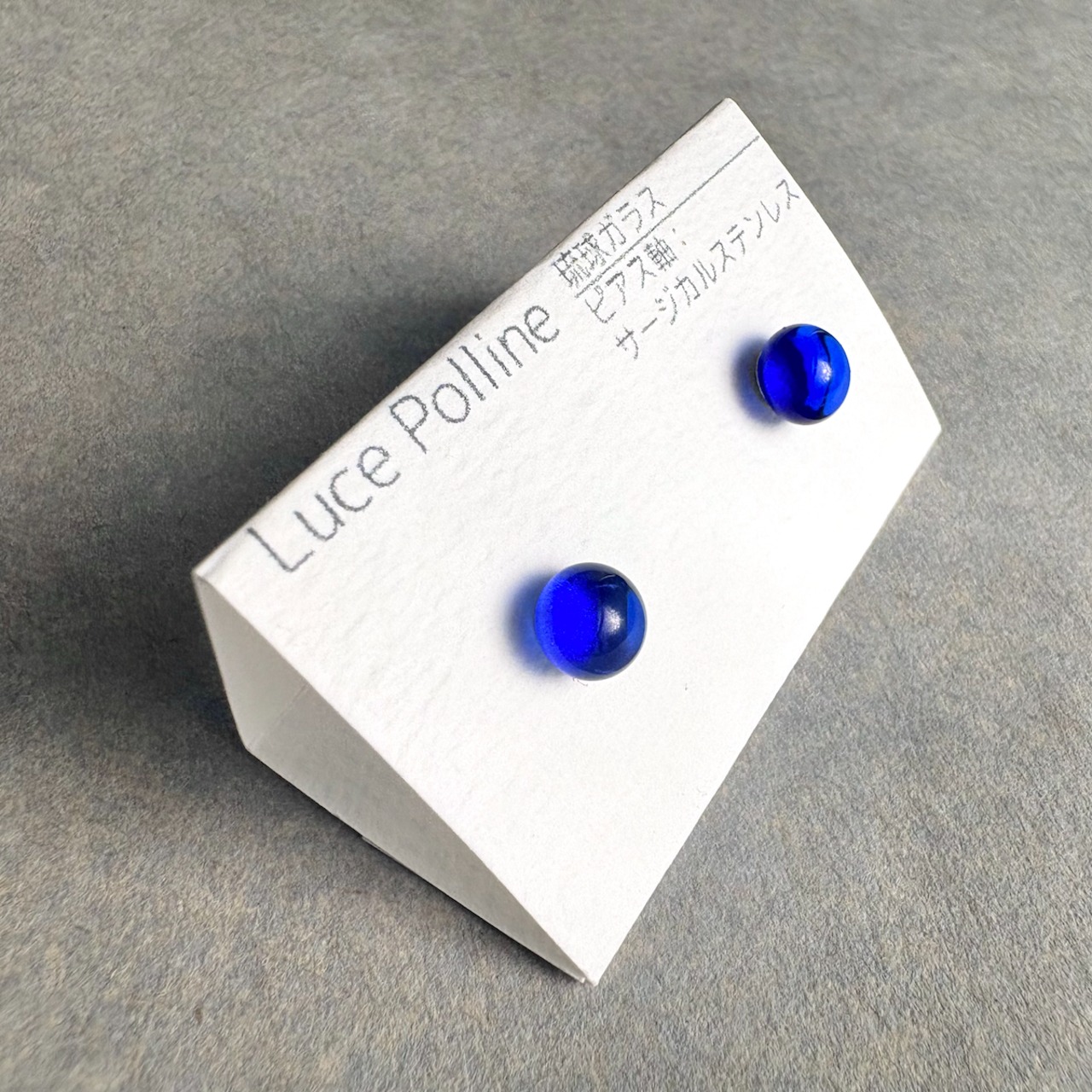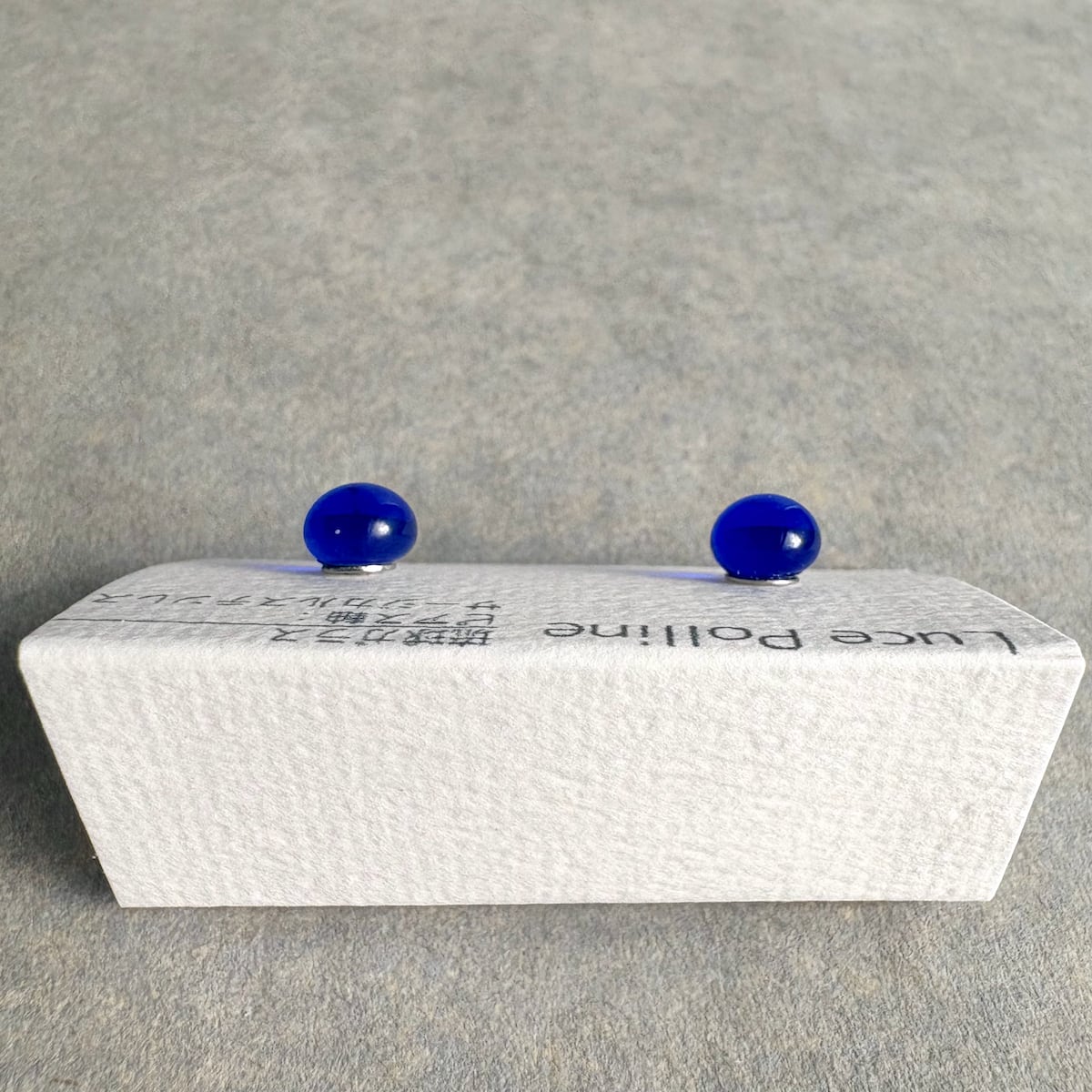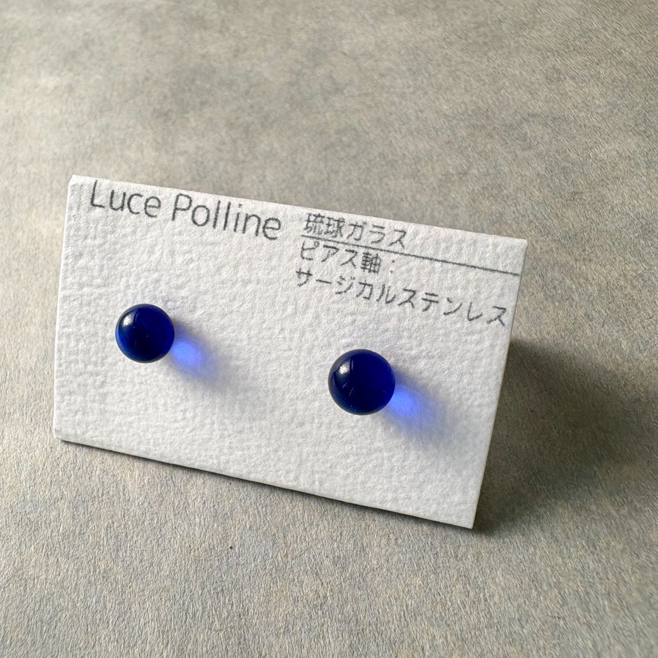 小さめの透明な濃い青の琉球ガラスの粒です。