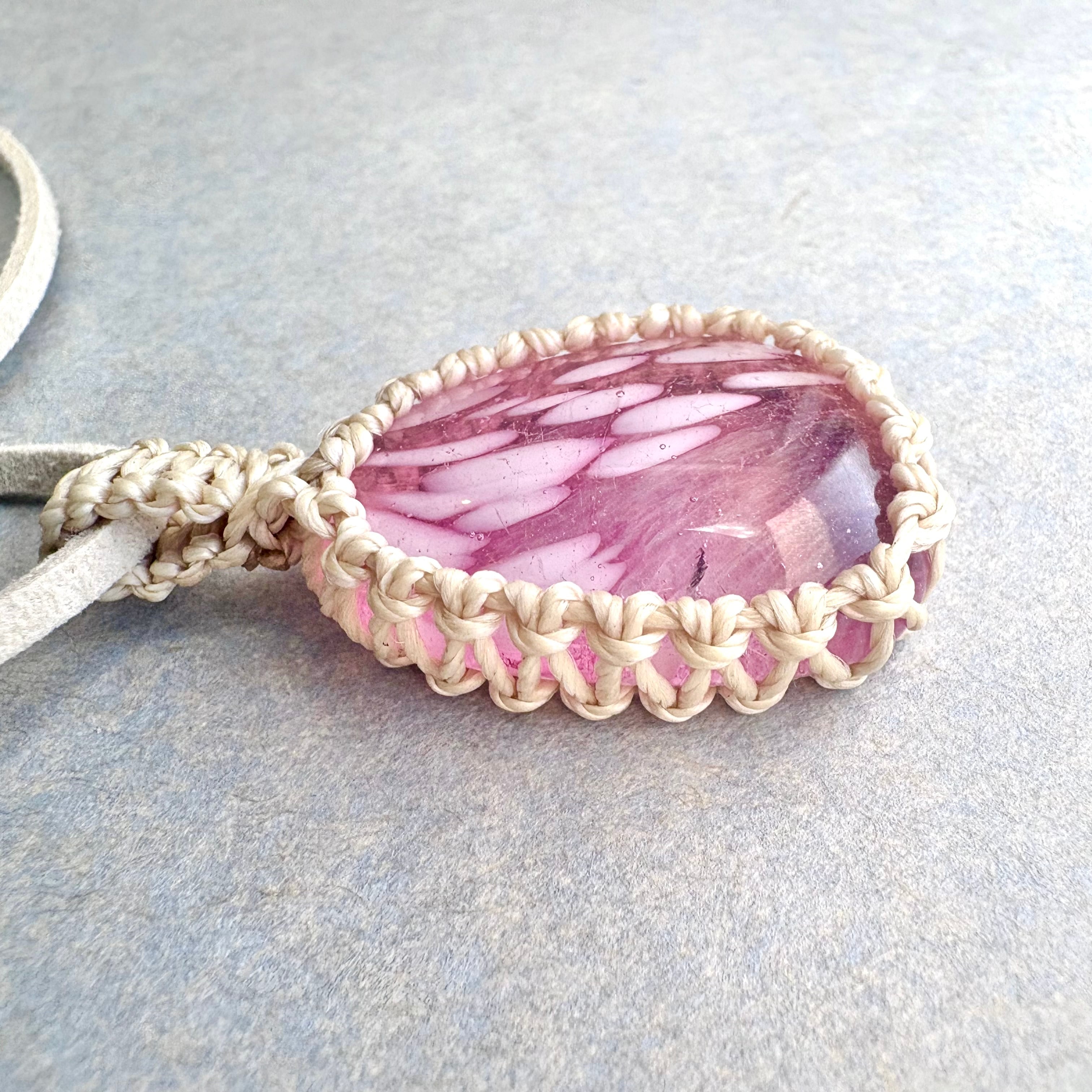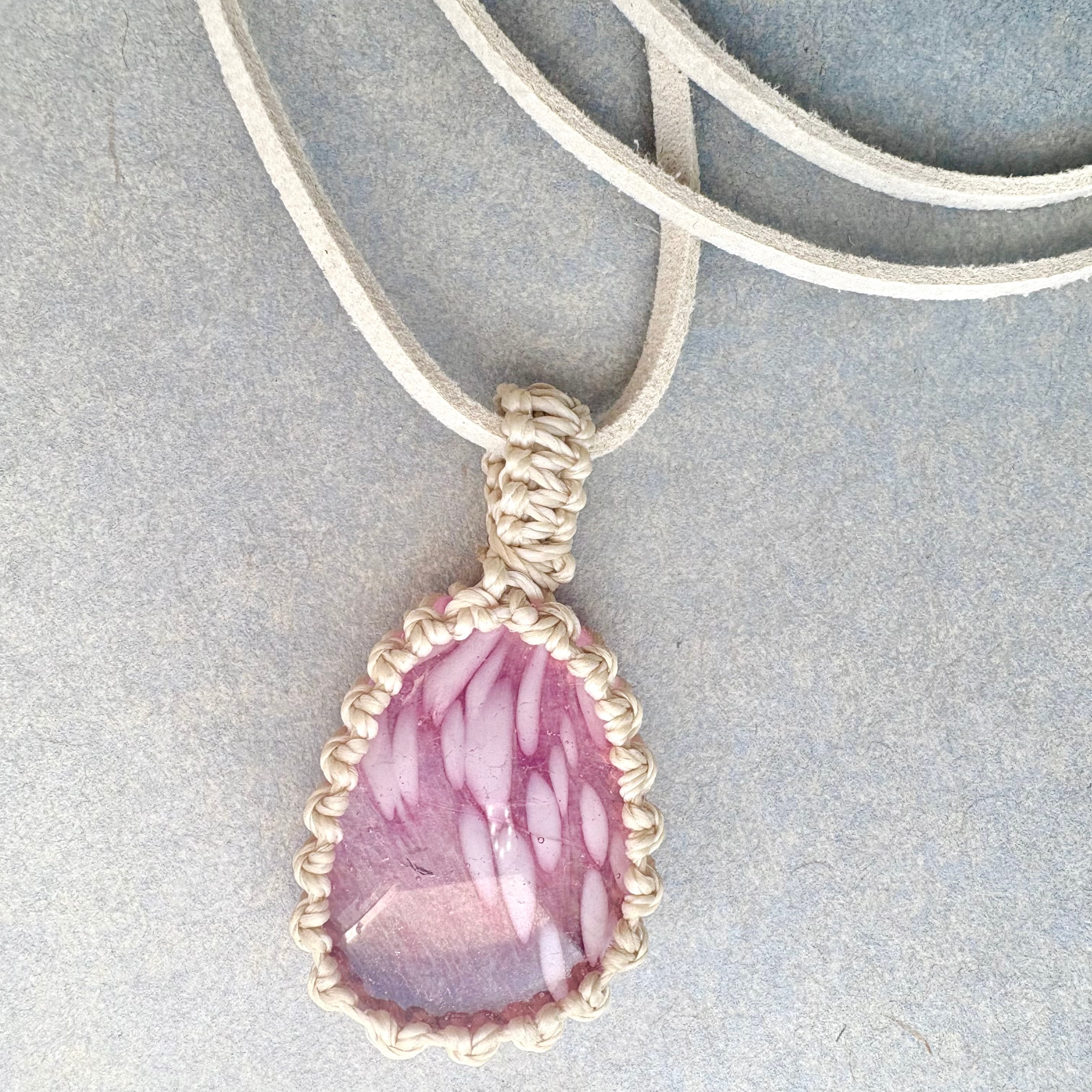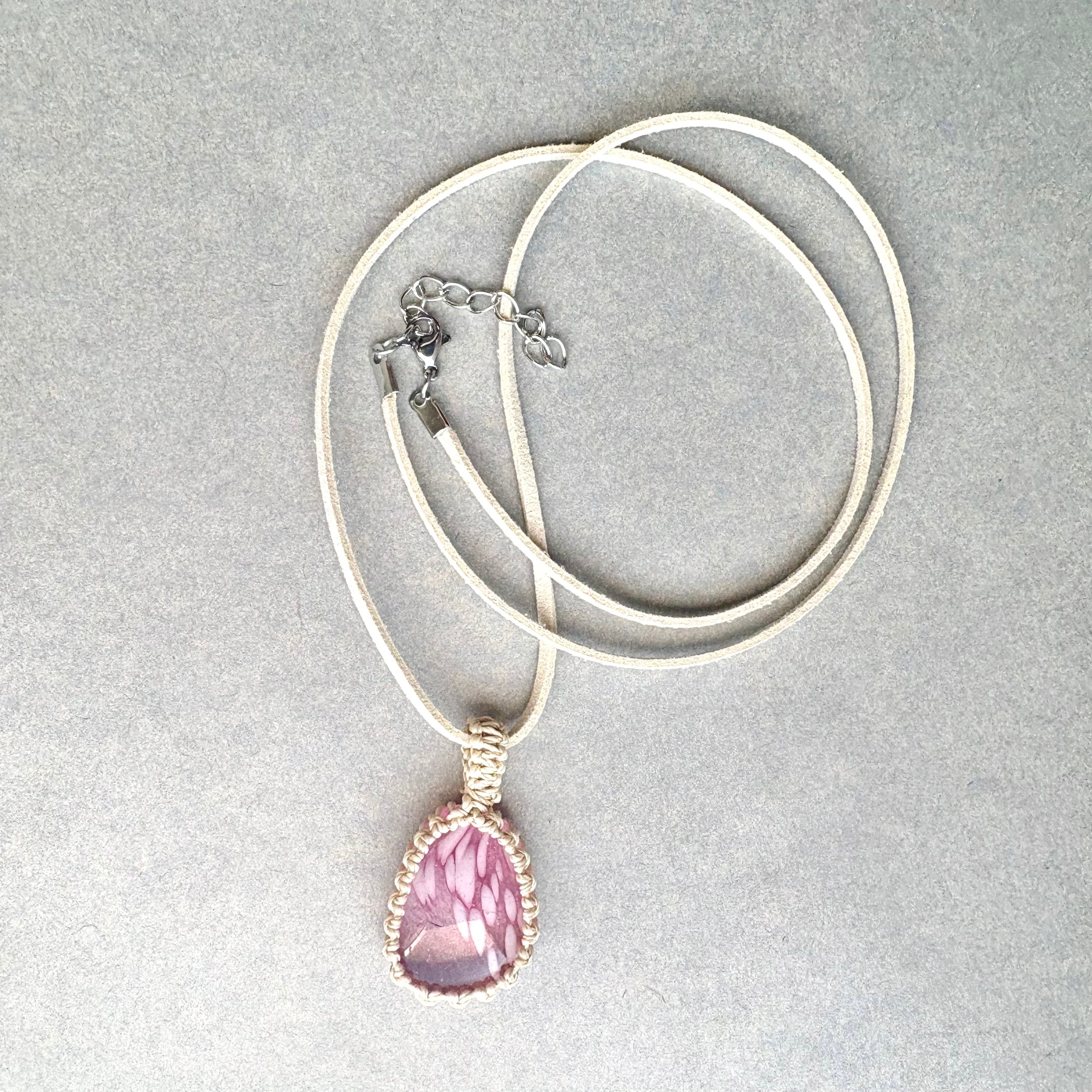 ・琉球ガラス、ワックスコード、フェイクスウェードネックレス60cm+アジャスター5cm