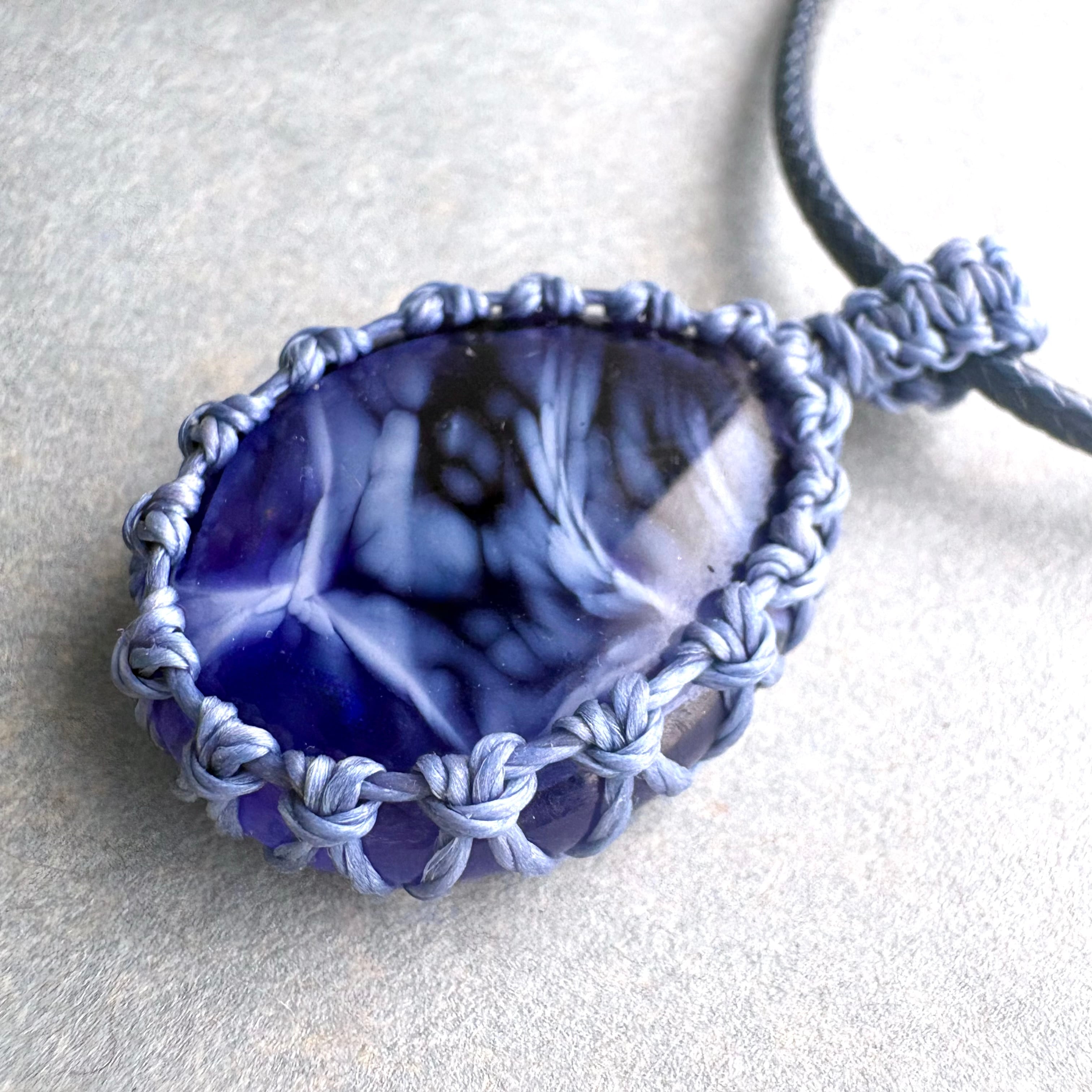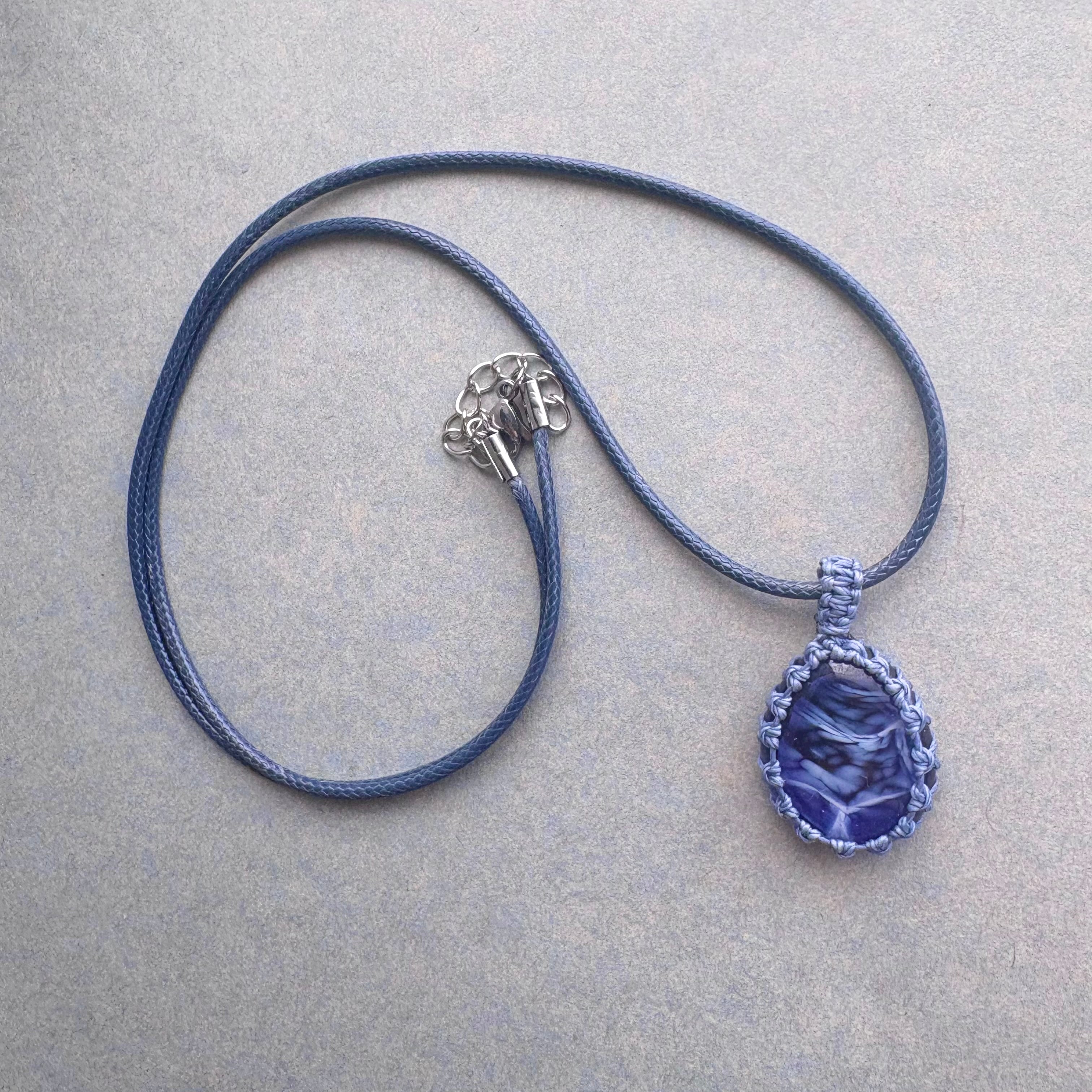 ・琉球ガラス、ワックスコード、ポリエステルコードネックレス60cm+アジャスター5cm