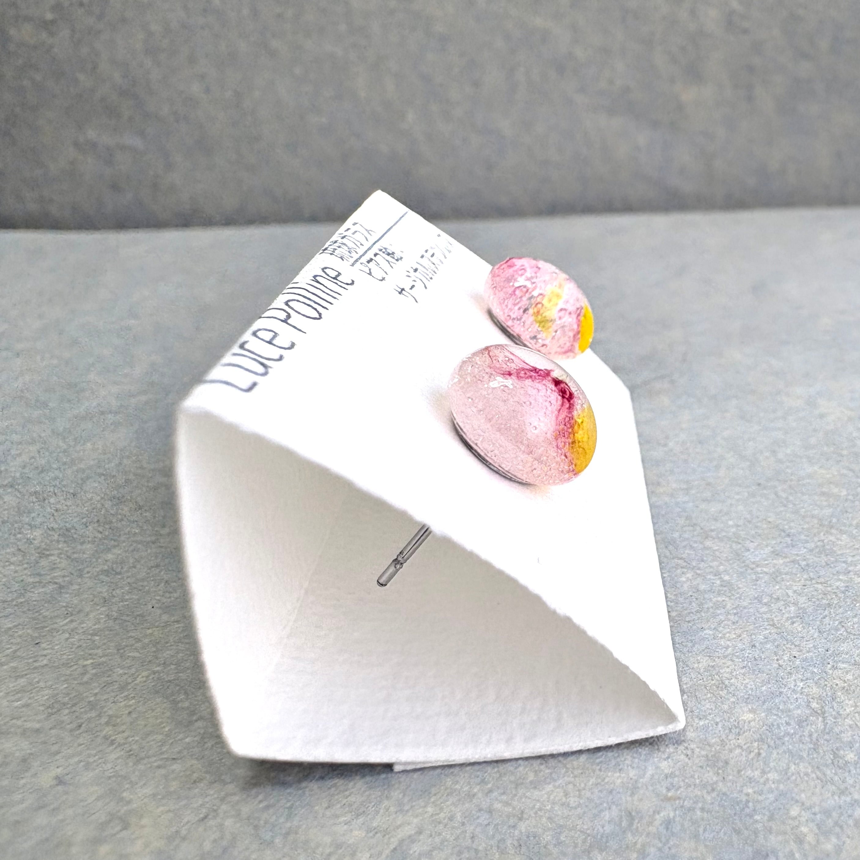 にぎやかな色合いが特徴的な色の琉球ガラスの粒です。