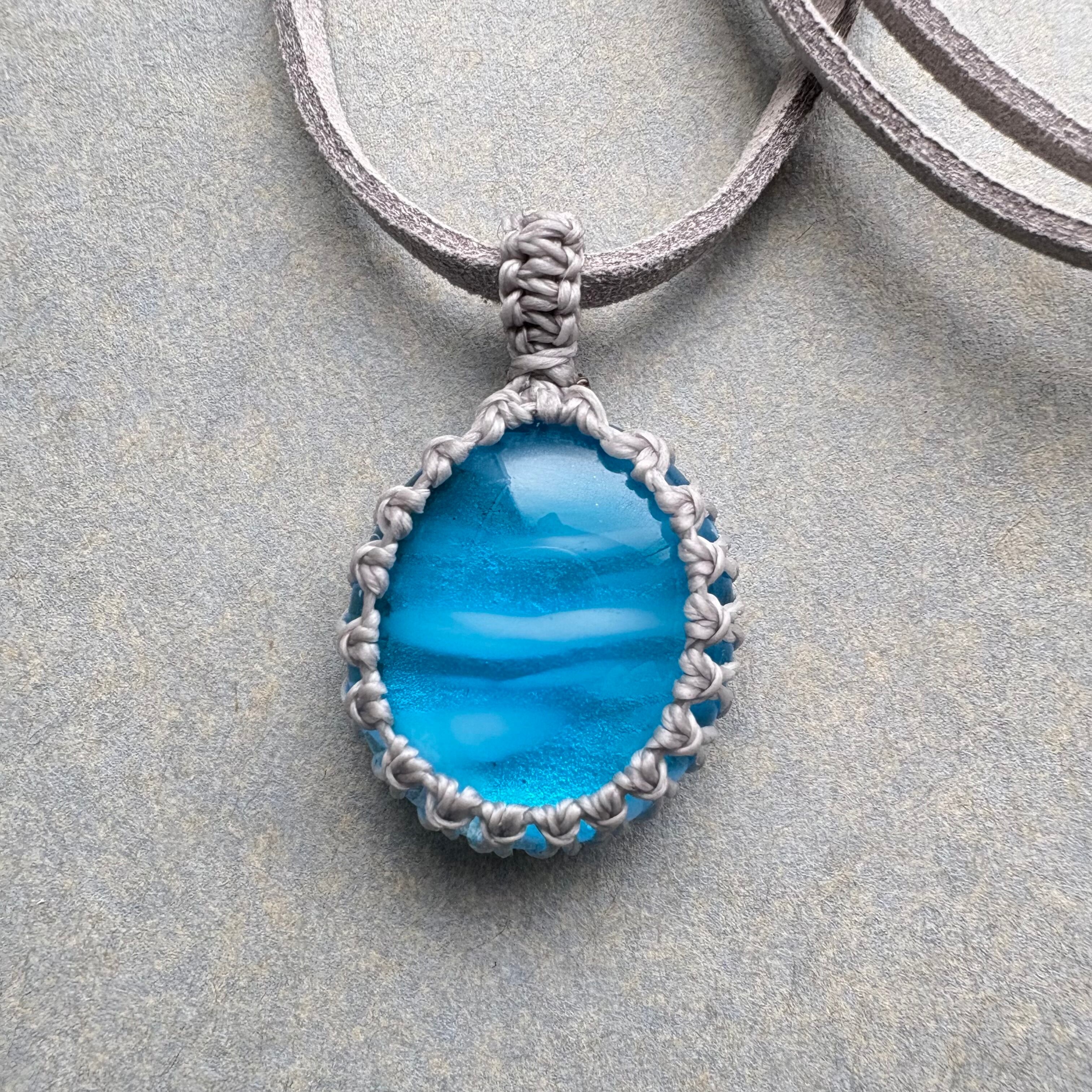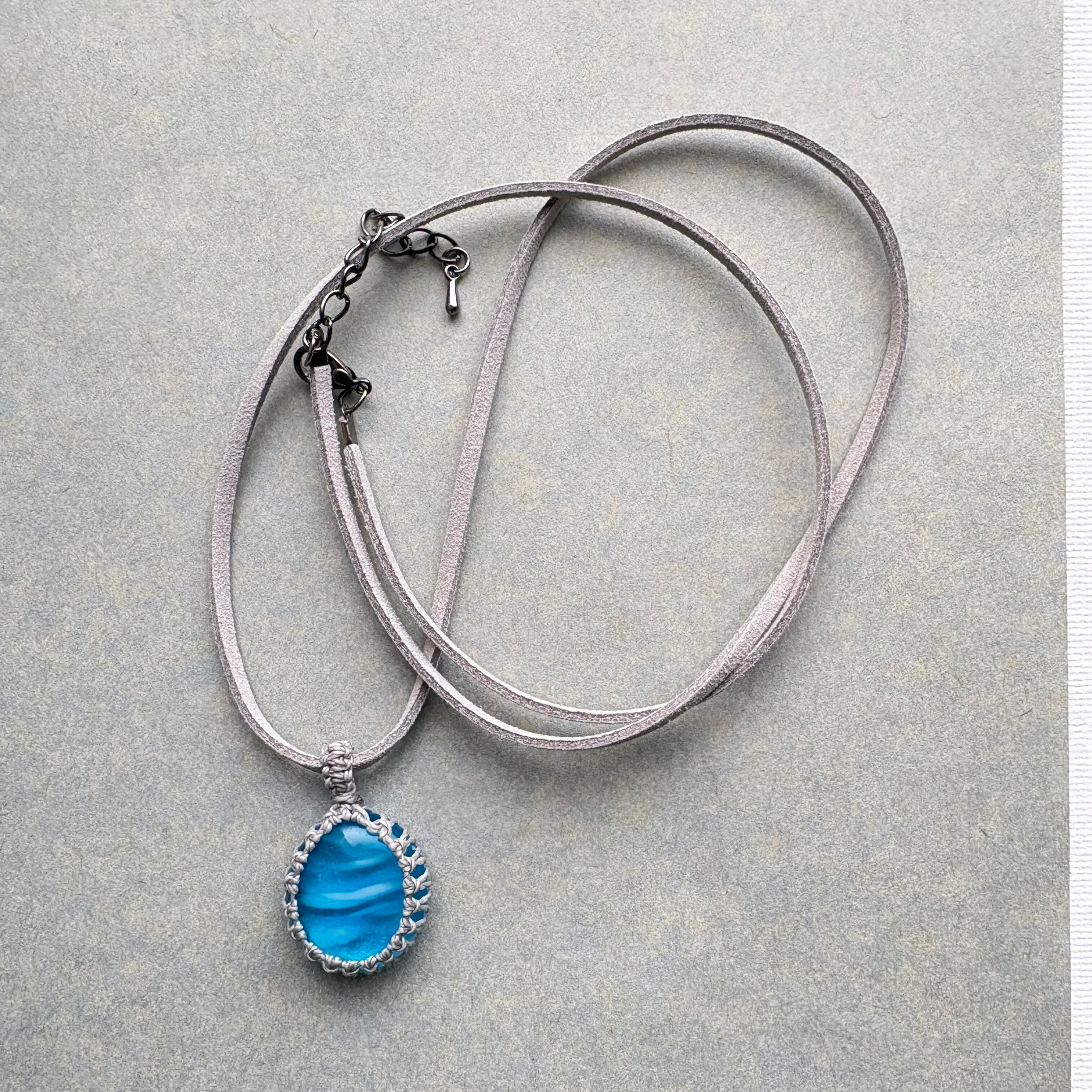 ・琉球ガラス、ワックスコード、フェイクスウェードネックレス60cm+アジャスター5cm