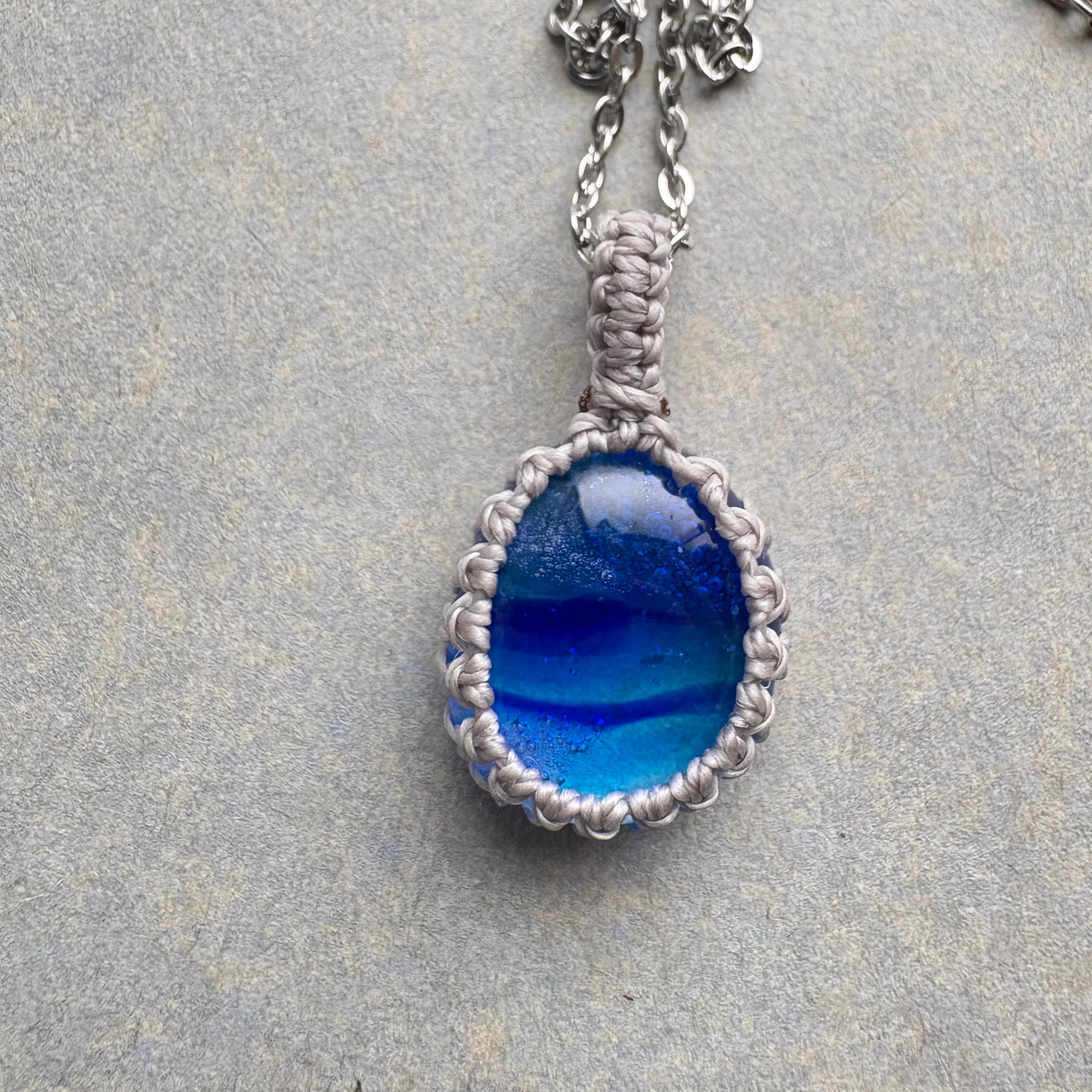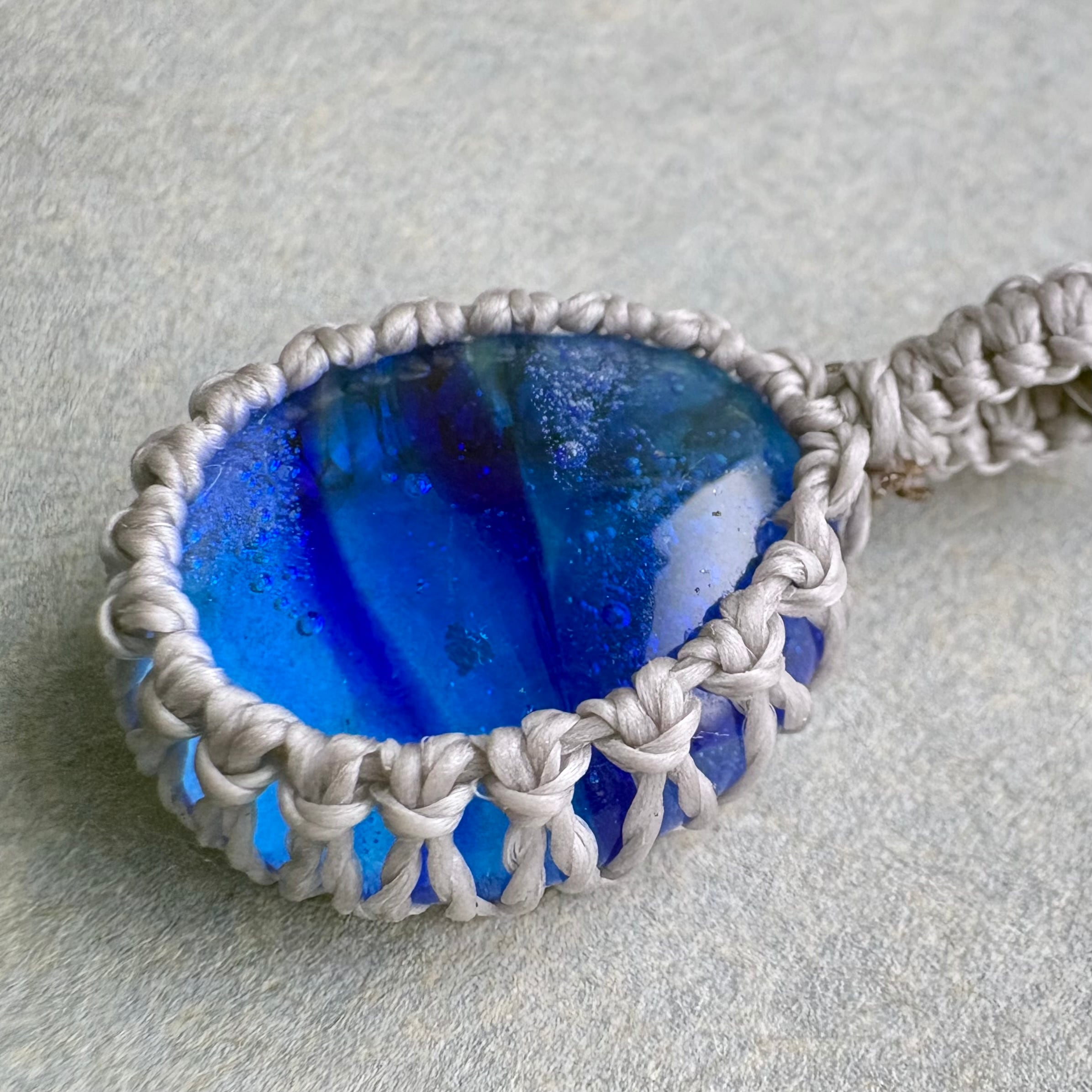 ・琉球ガラス、ワックスコード、フェイクスウェードネックレス60cm+アジャスター5cm