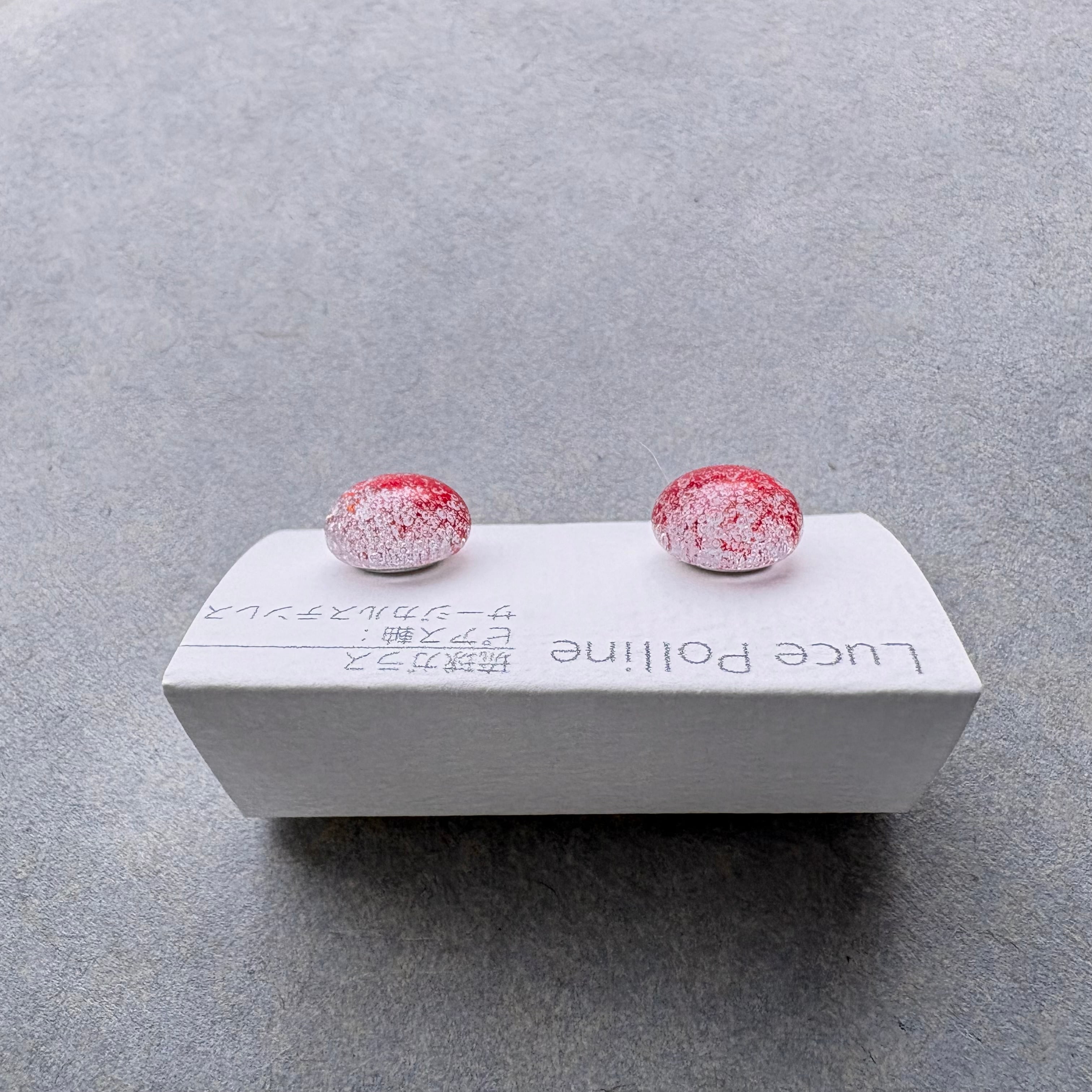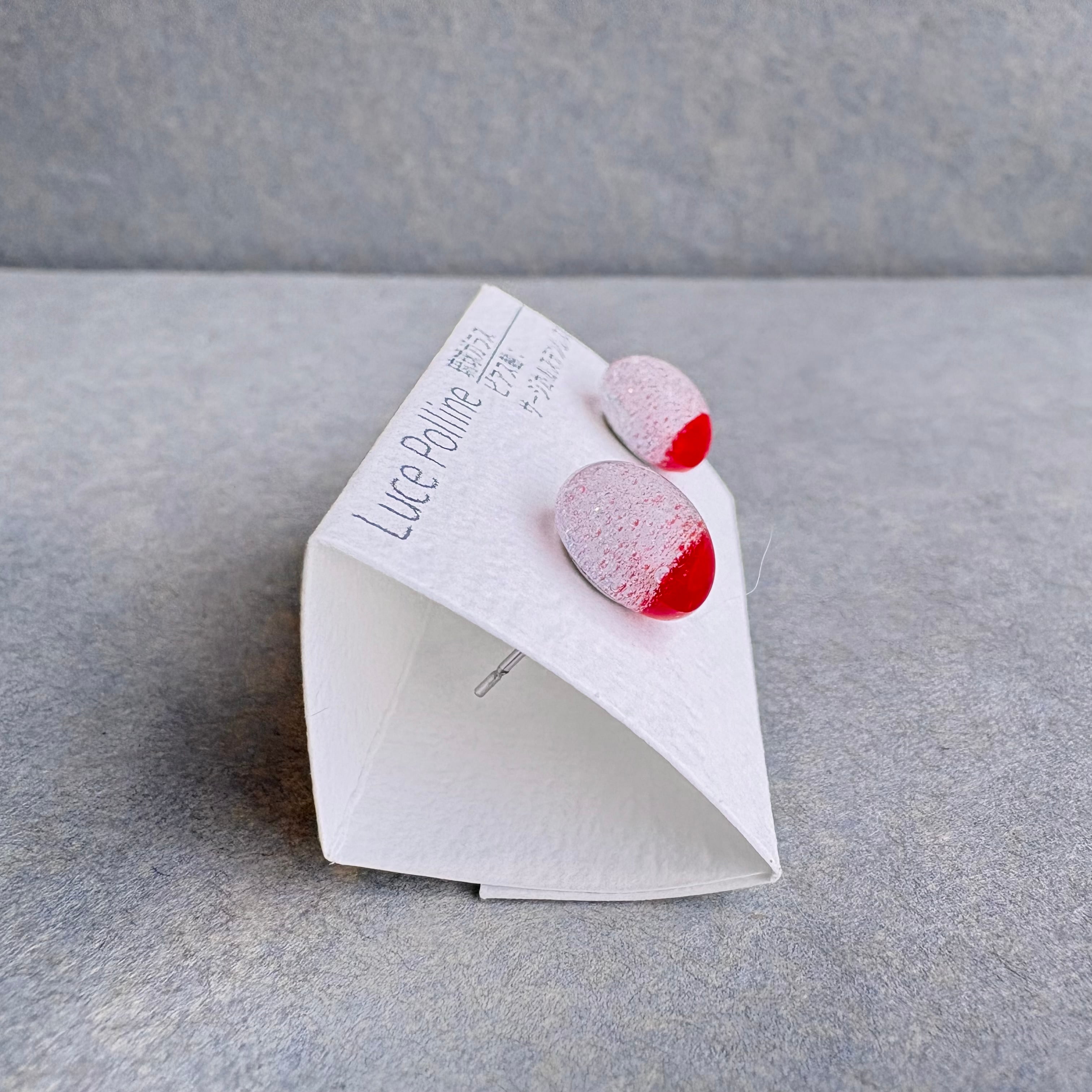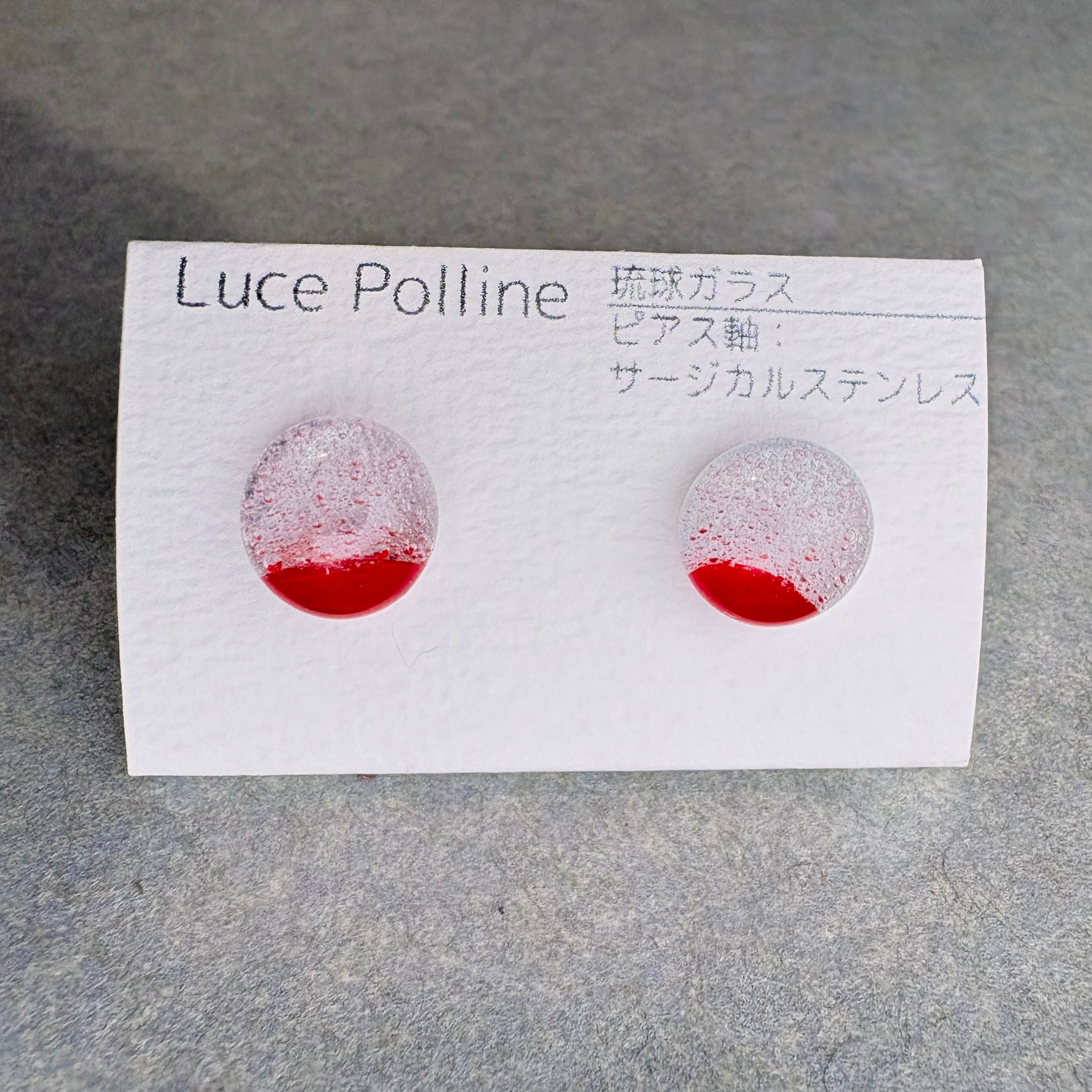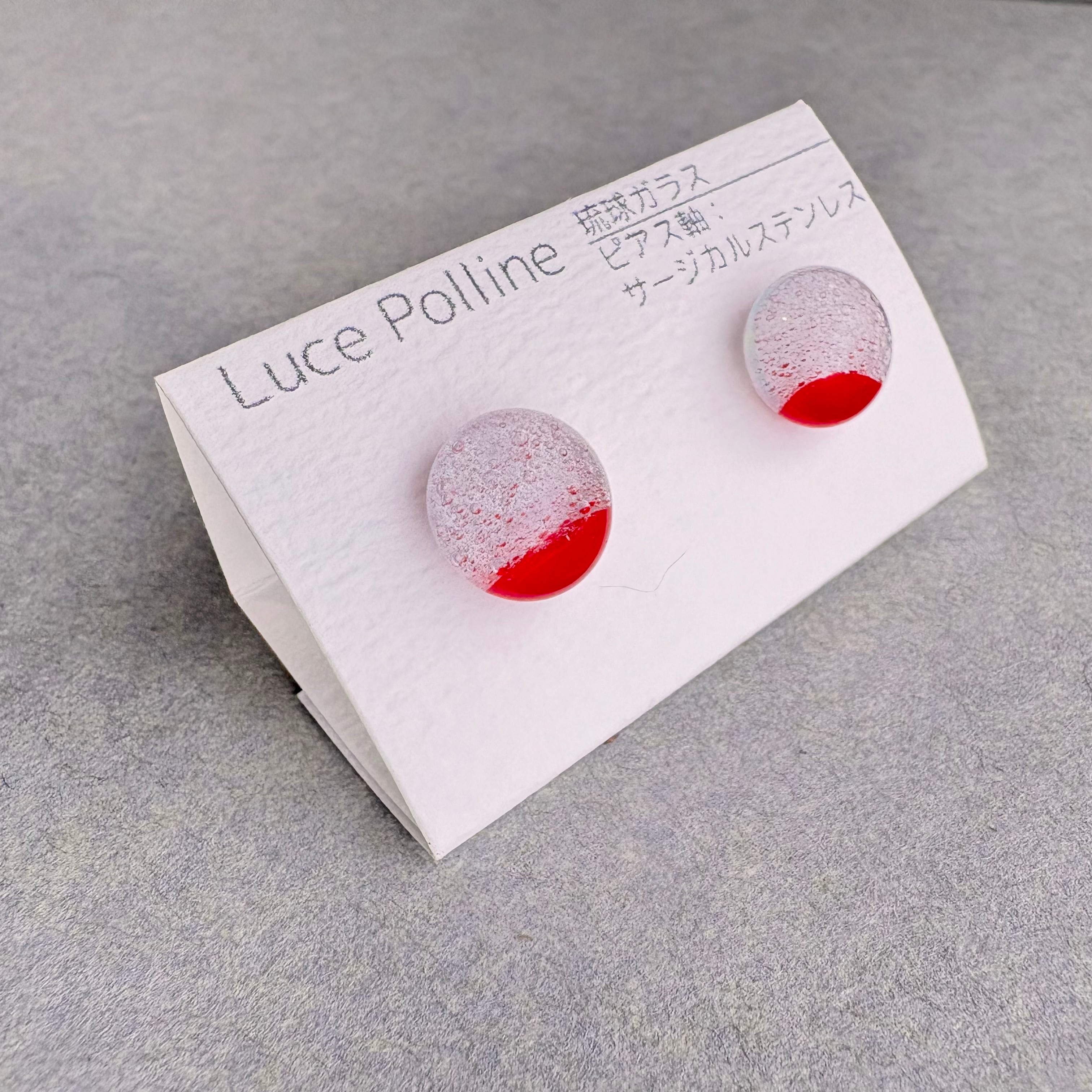 気泡たっぷりのガラスに、しっとりとした上品な艶感を持つ希少な赤い琉球ガラスを組み合わせた粒です。