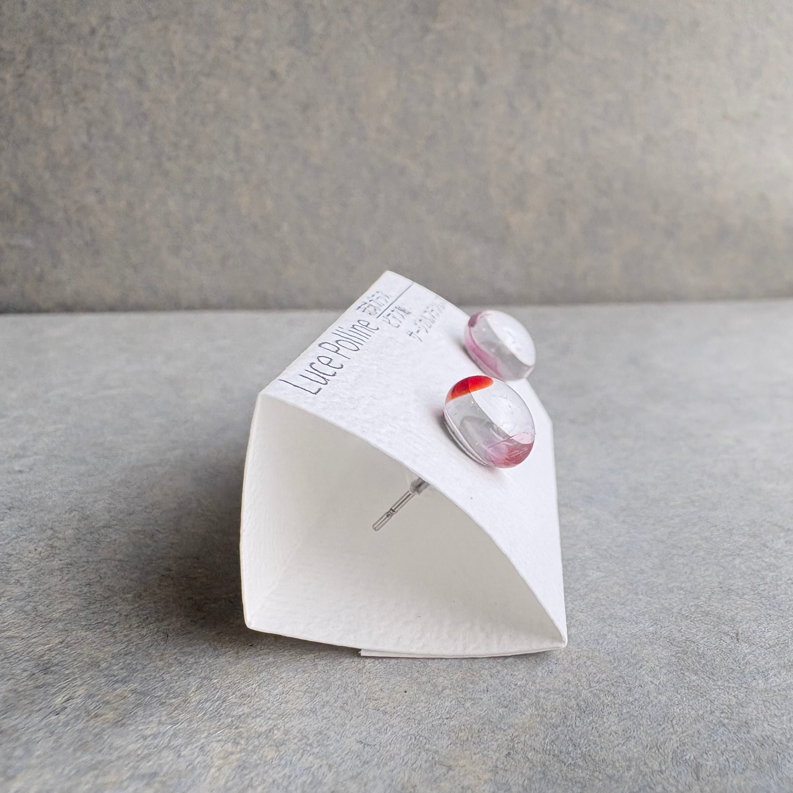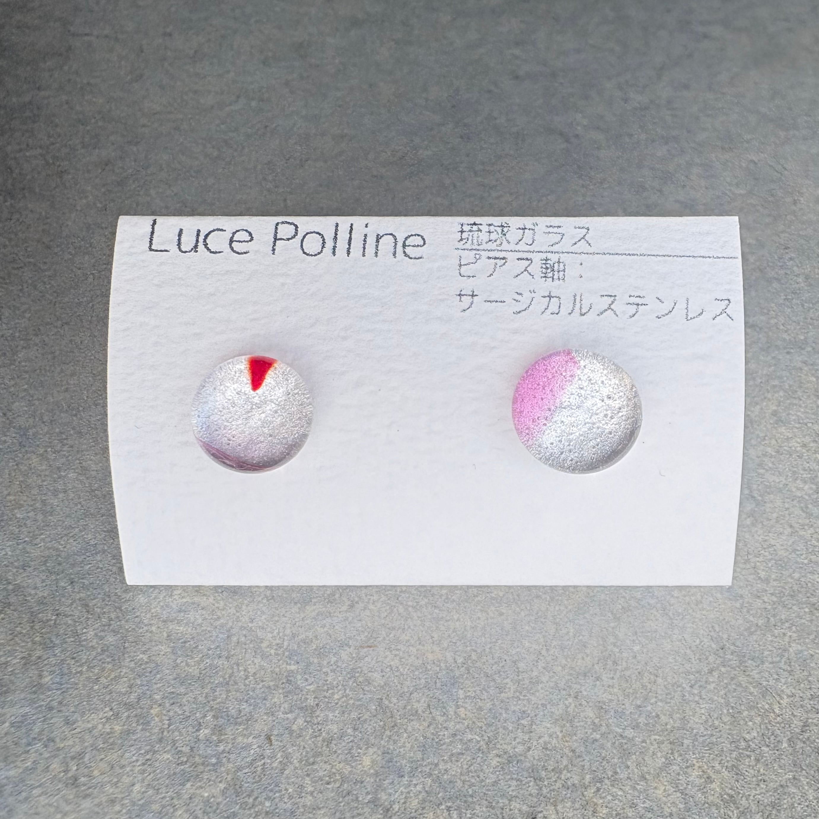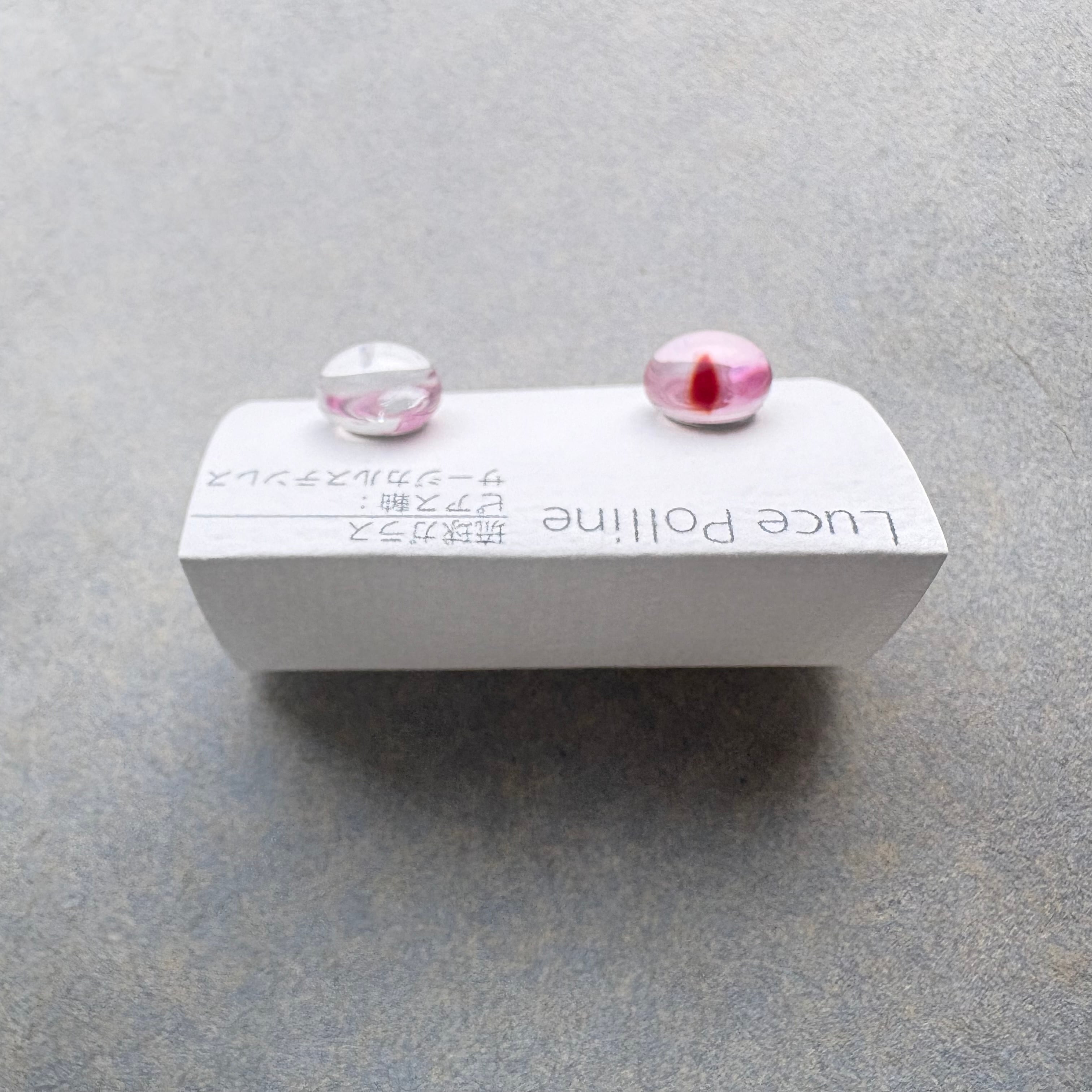 透明なガラスに、ほんのりピンクのアクセントをつけた琉球ガラスの粒です。