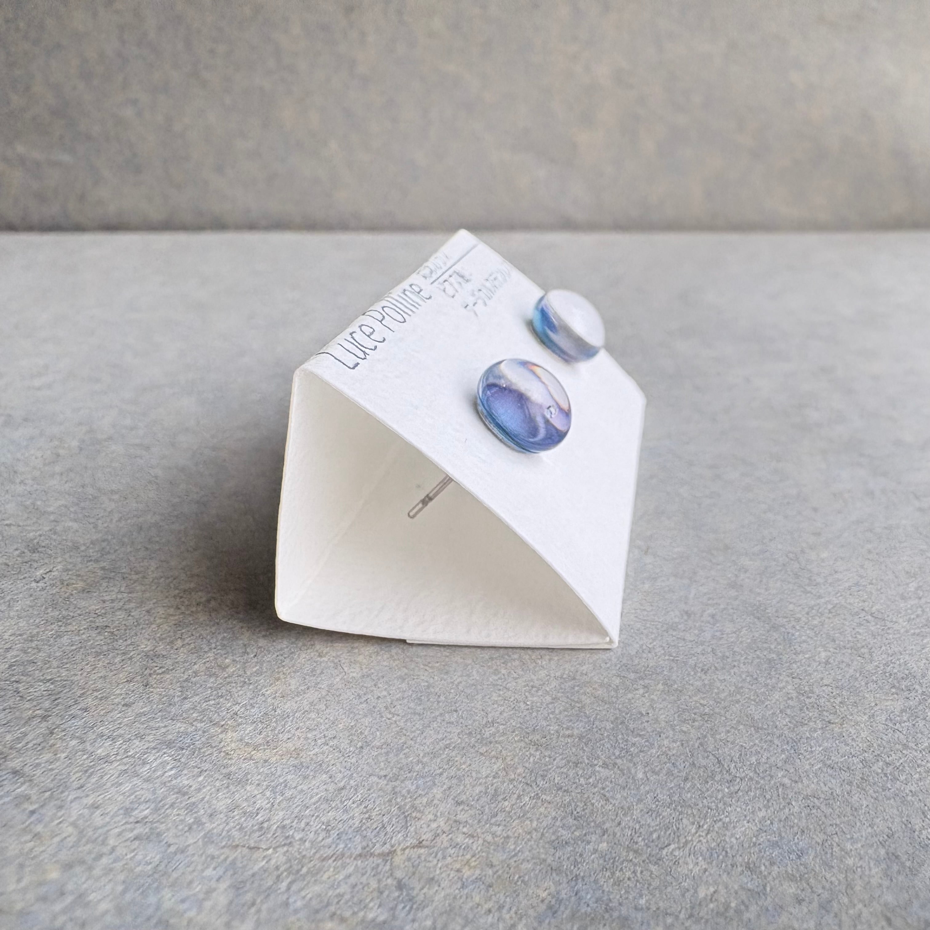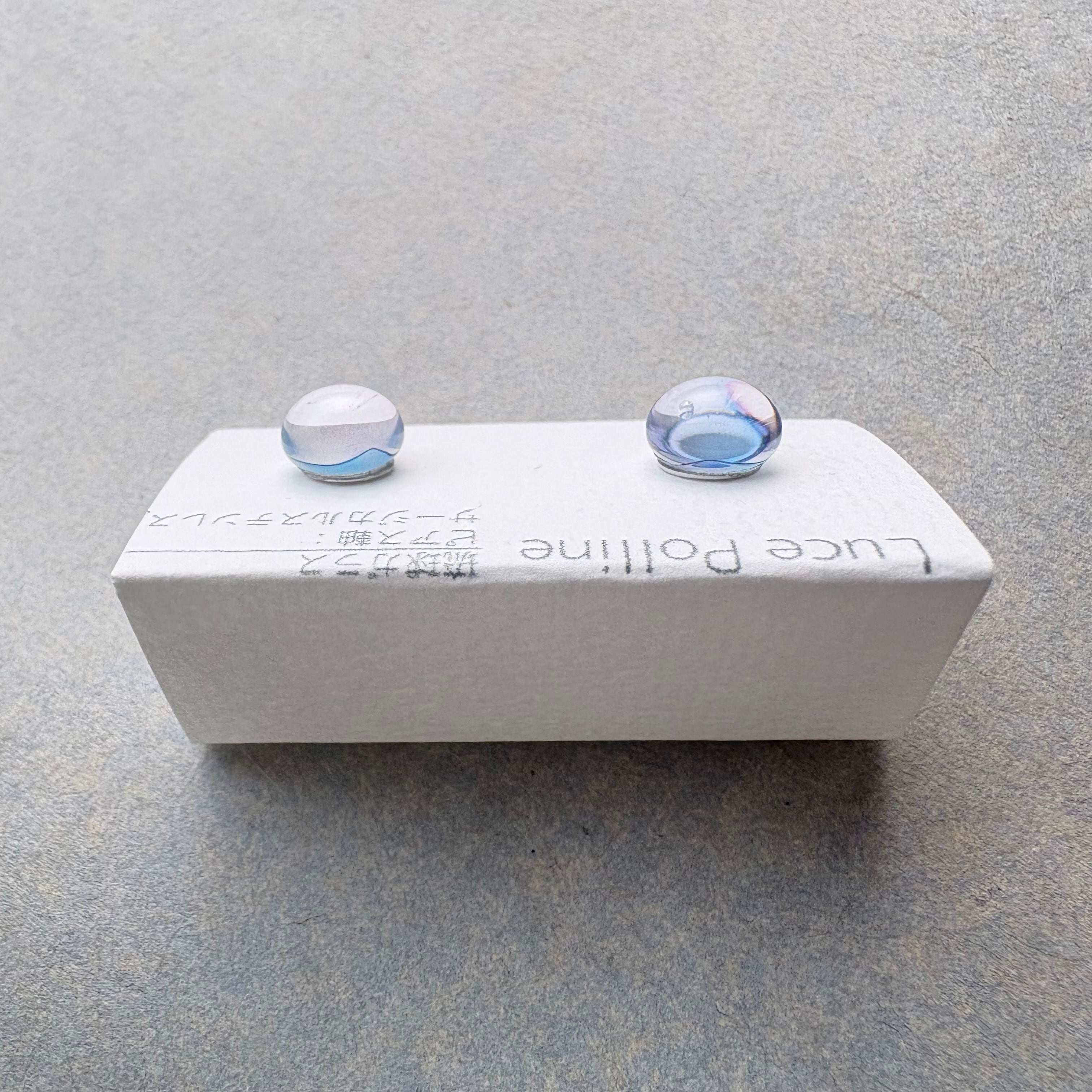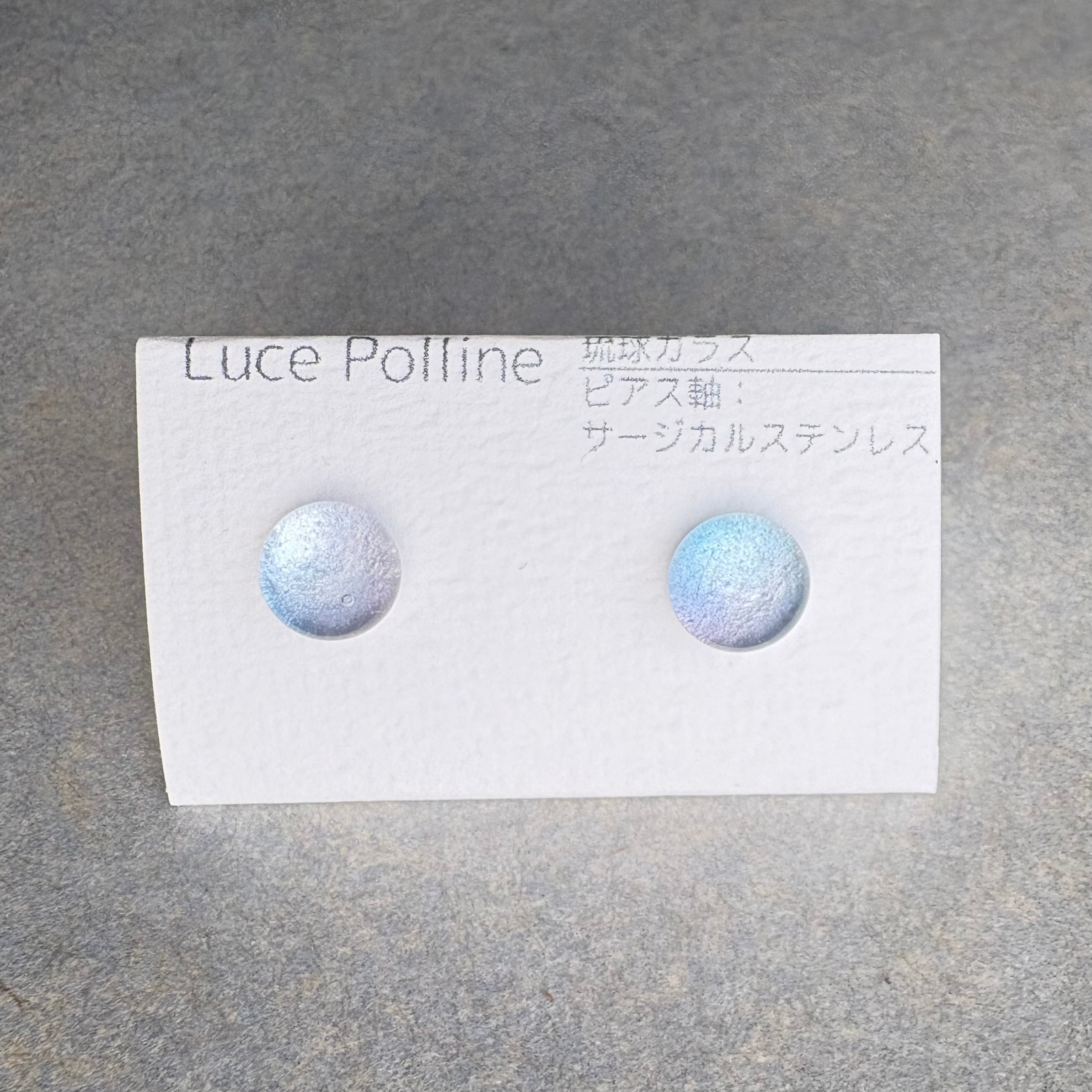ごくごく淡い水色とごくごく淡い紫色が溶け合う、琉球ガラスの粒です。