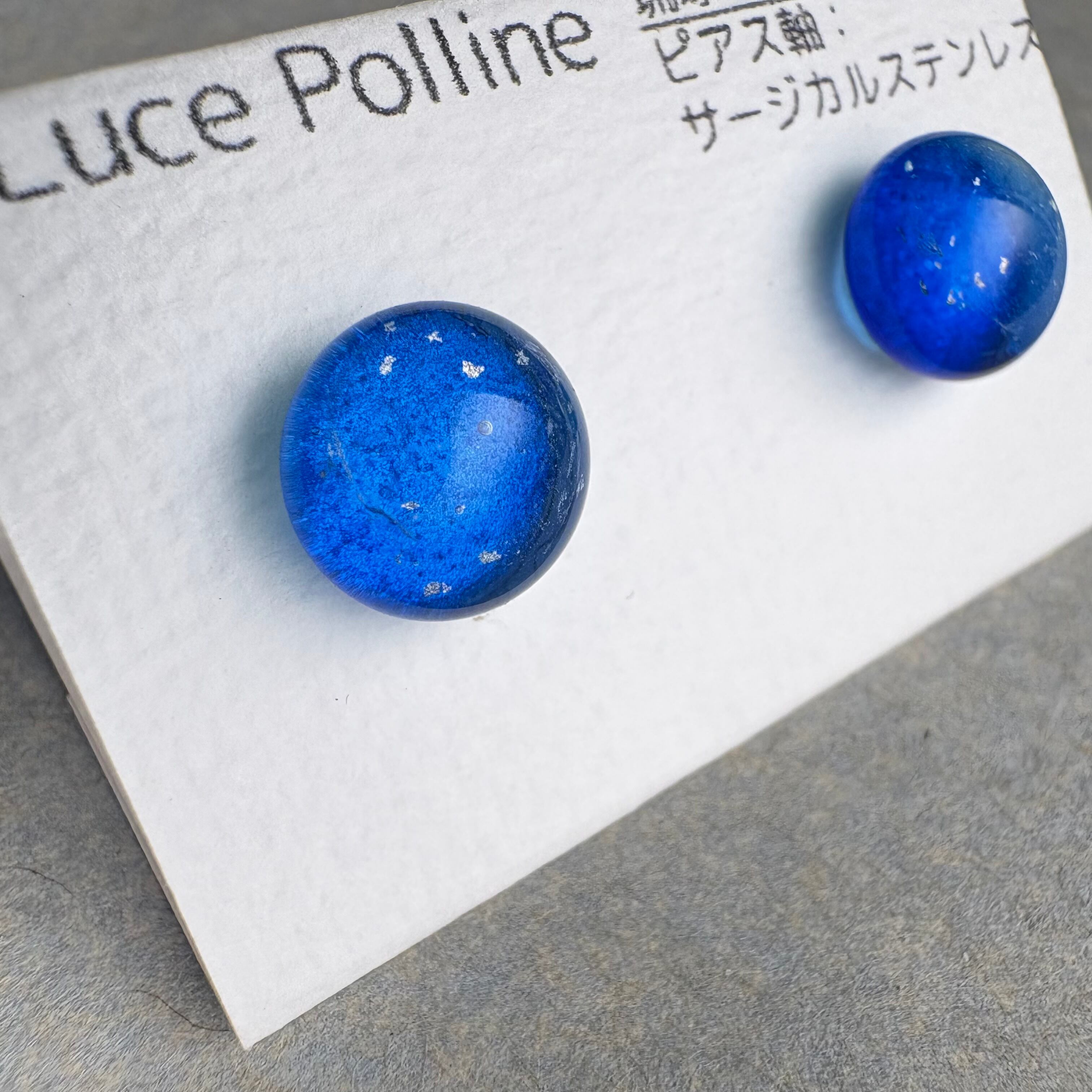 琉球ガラスらしい青に銀彩が舞う粒です。