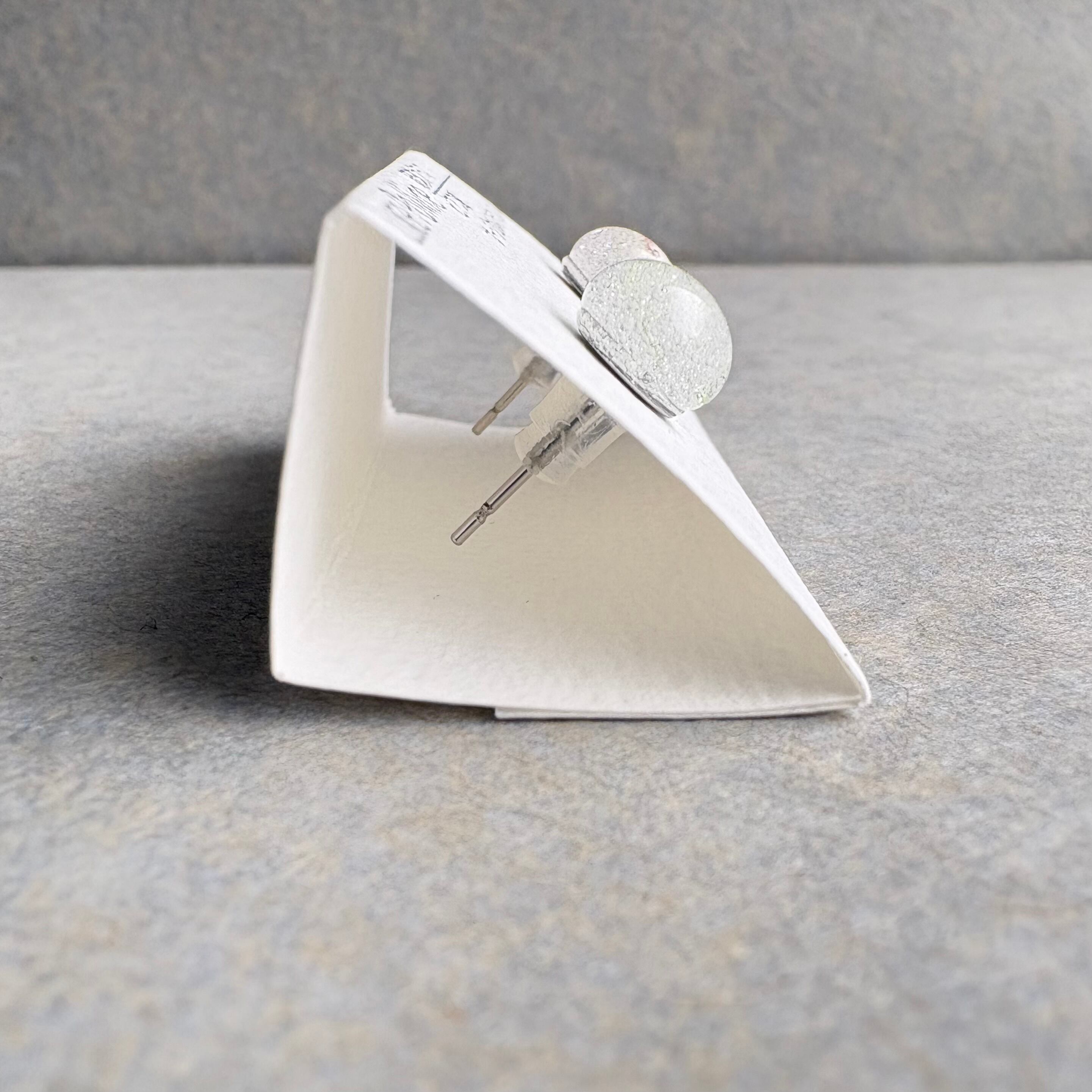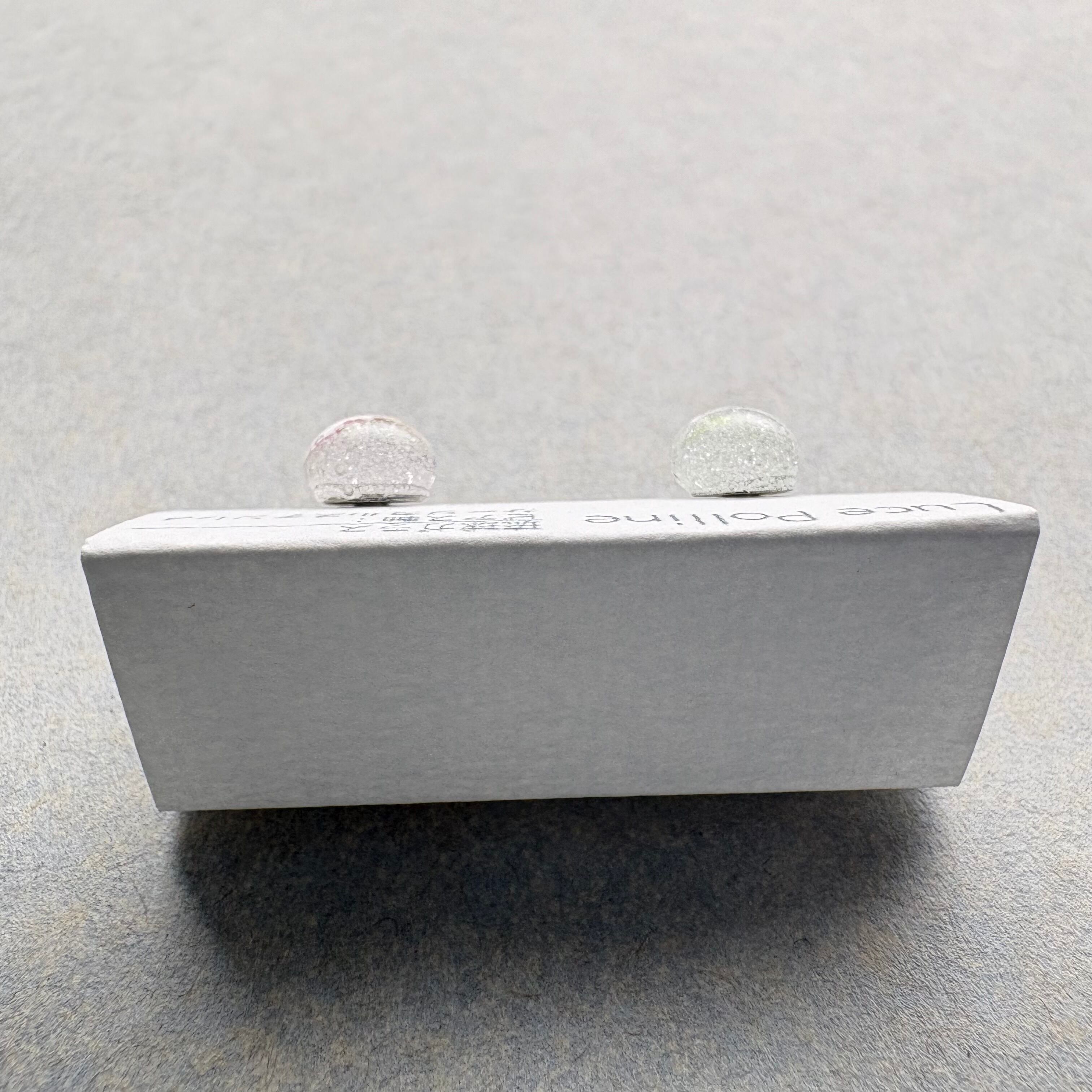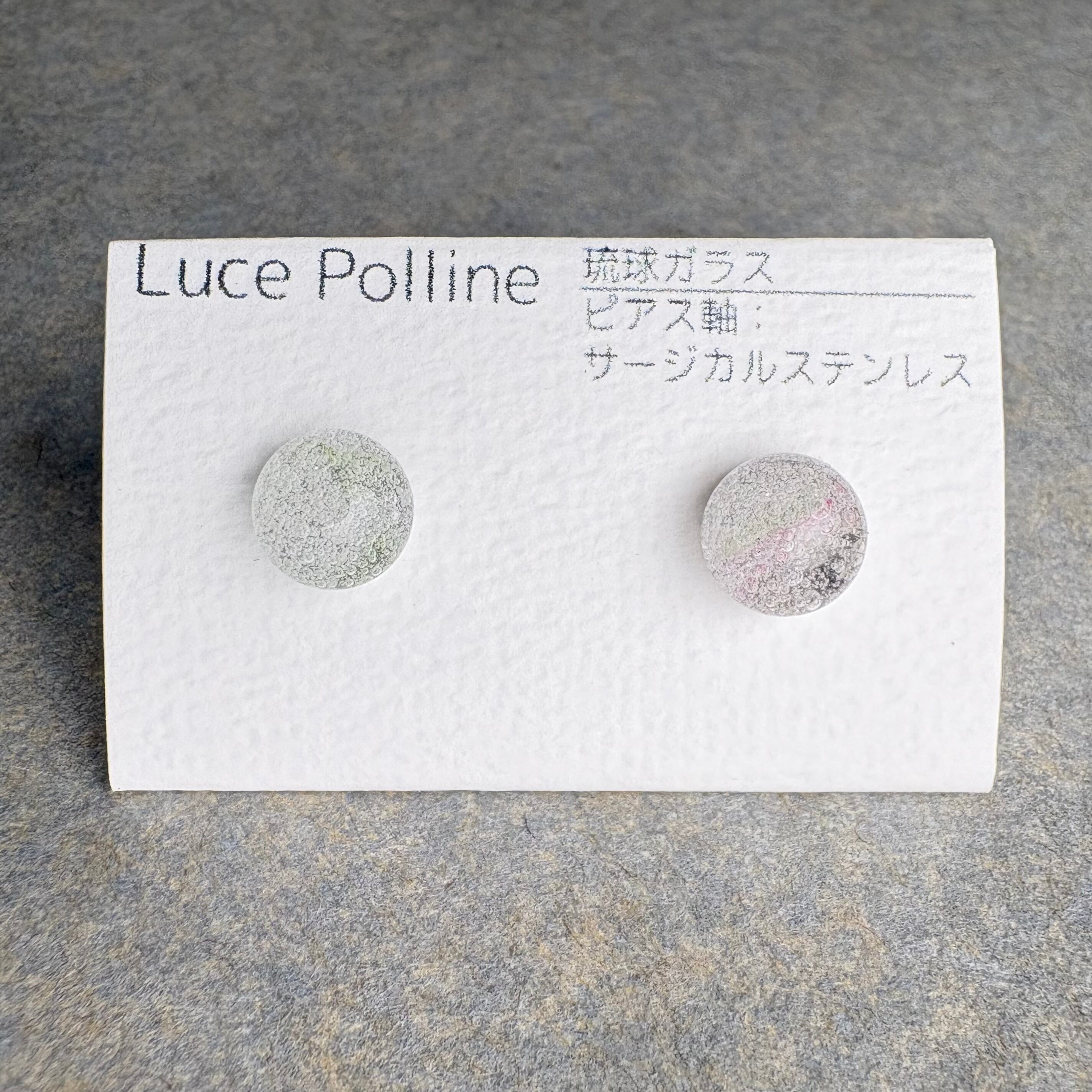 淡い緑と淡い桃色のアクセントのある気泡たっぷりの琉球ガラスの粒です。