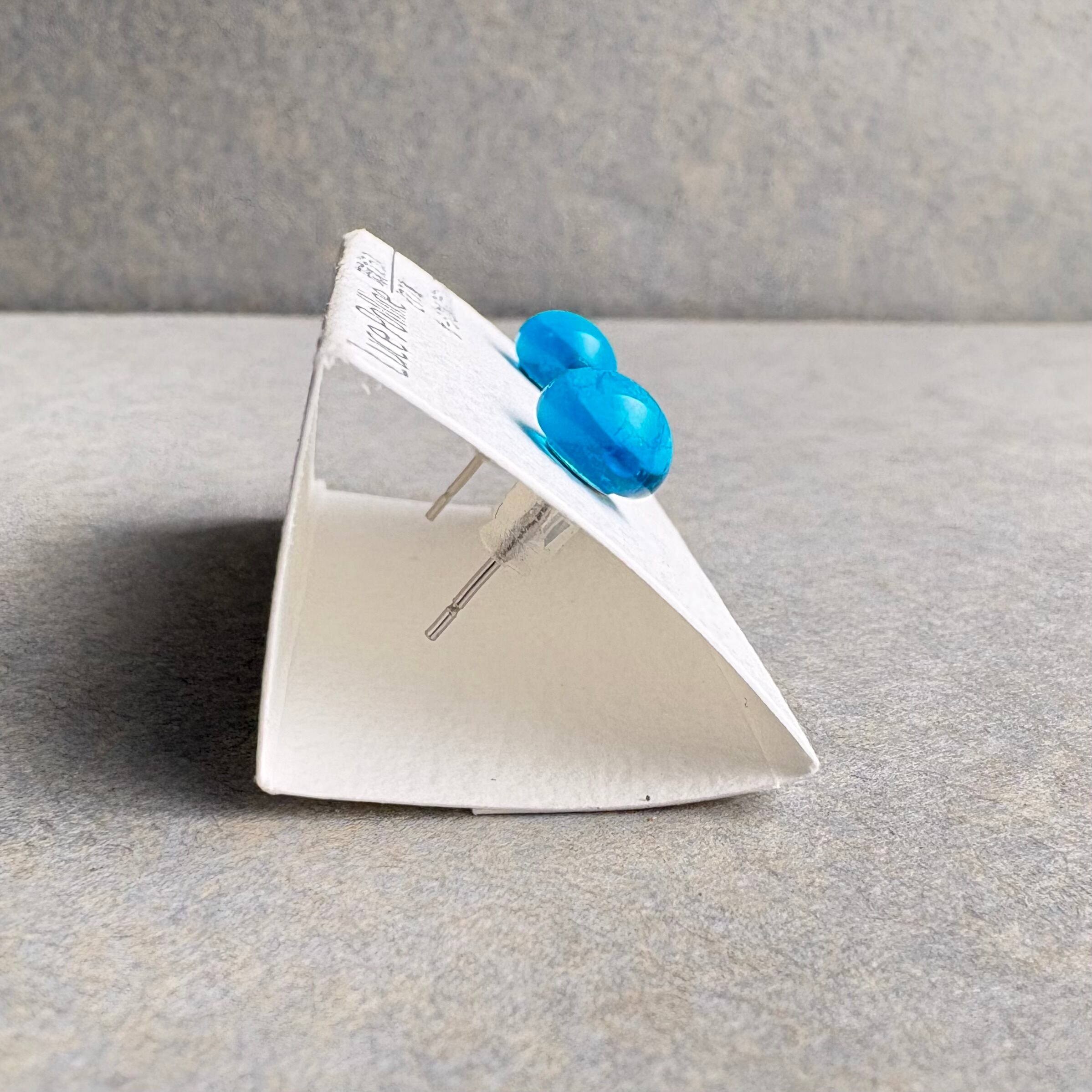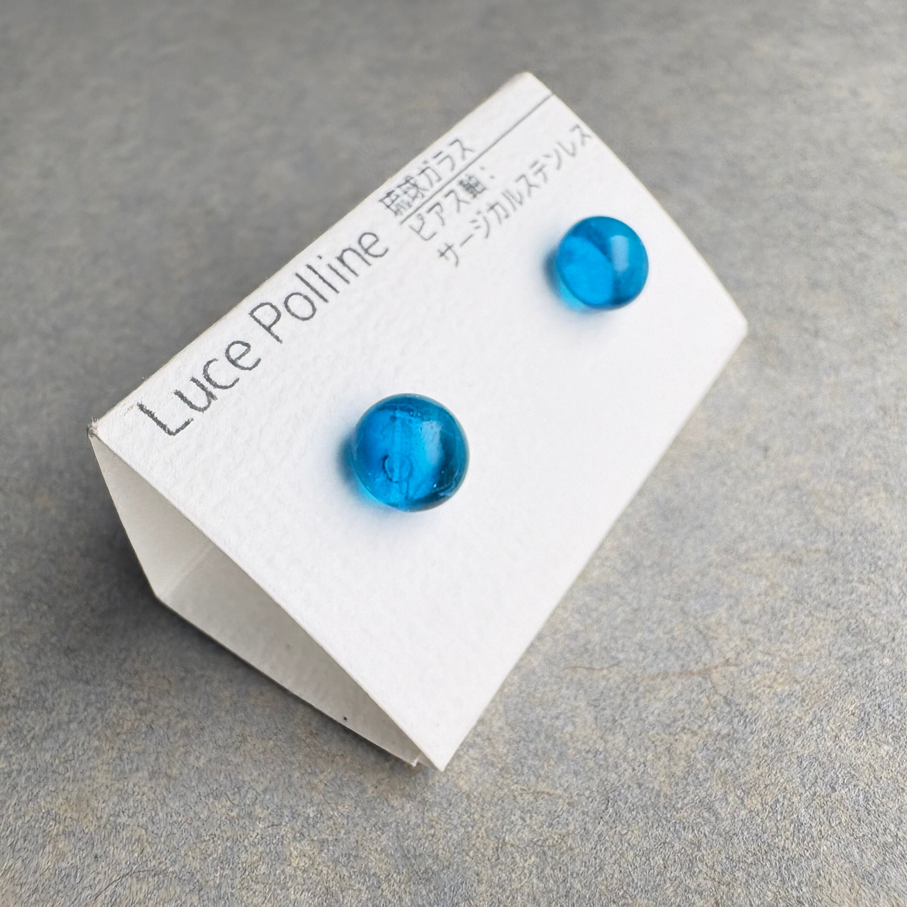 どこから見ても濃い水色の琉球ガラスの粒です。