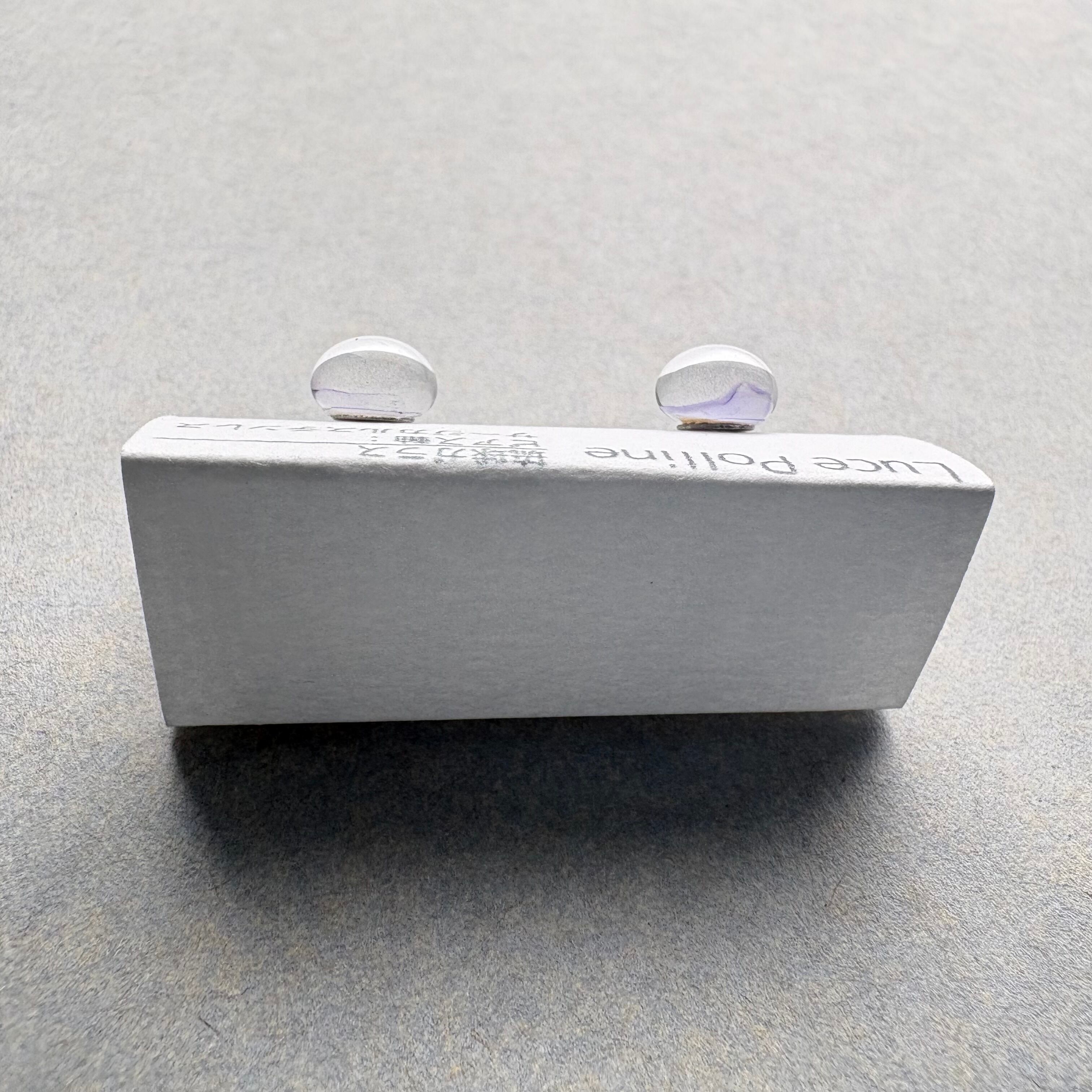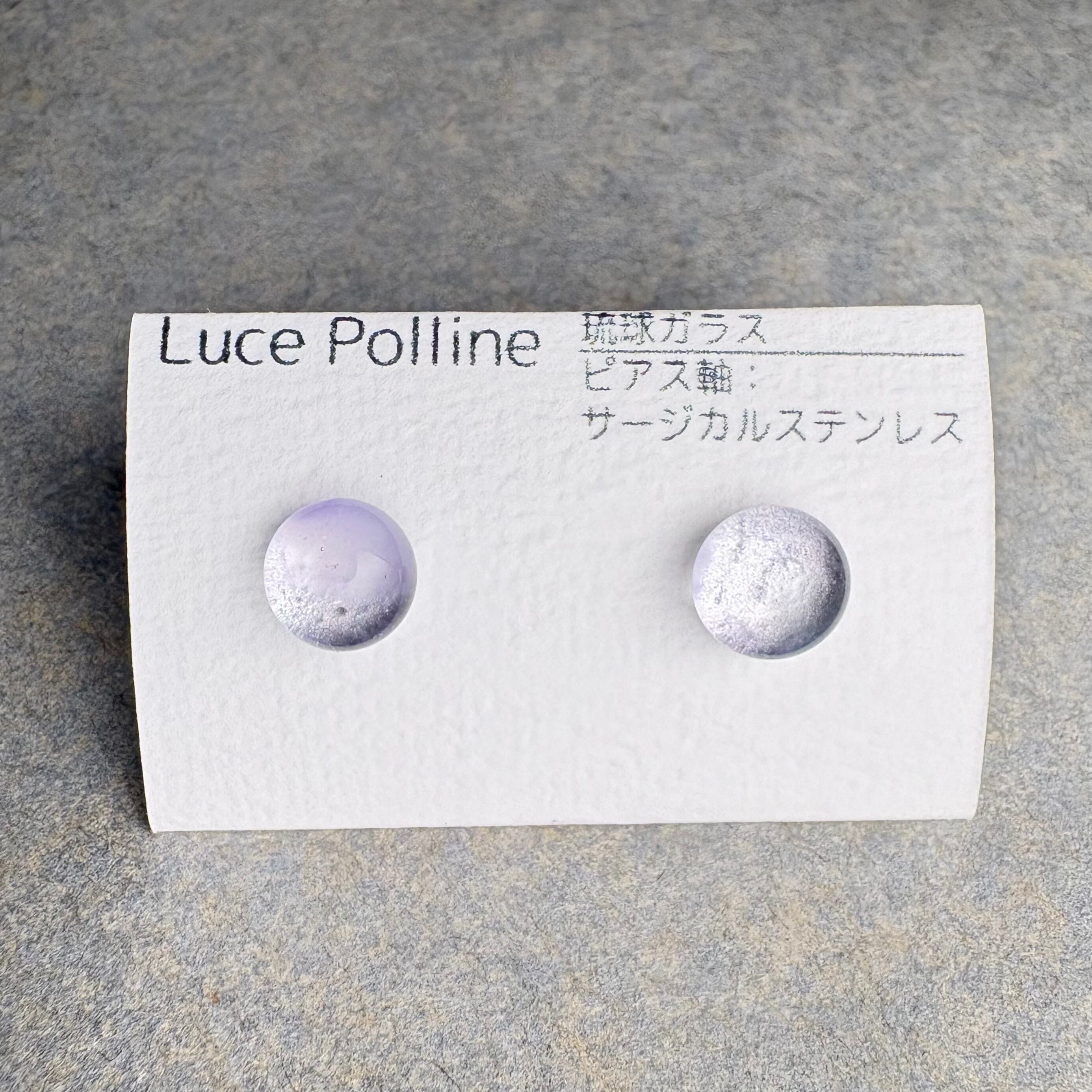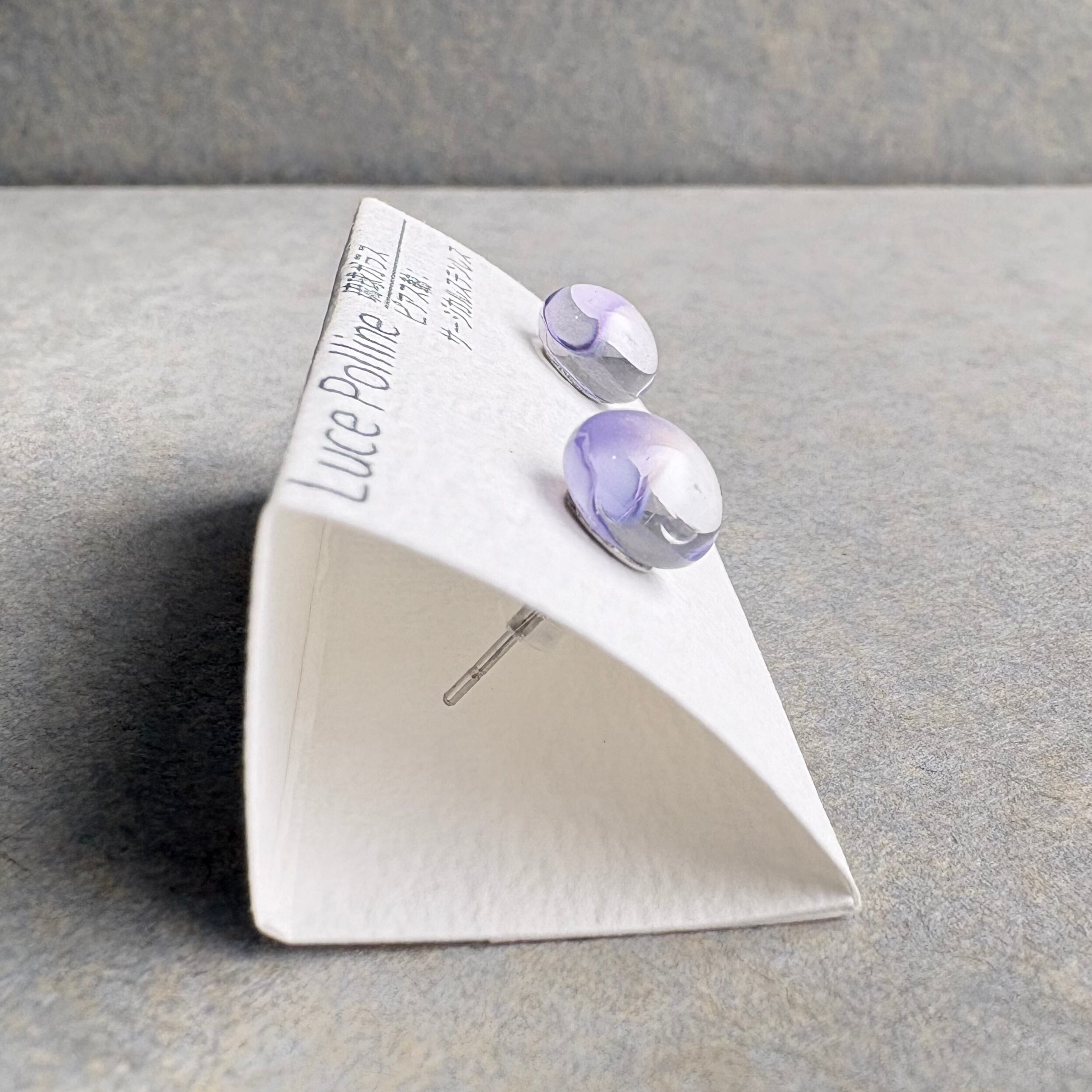 ほんのりと淡い紫色がふわっと光を反射する琉球ガラスの粒です。