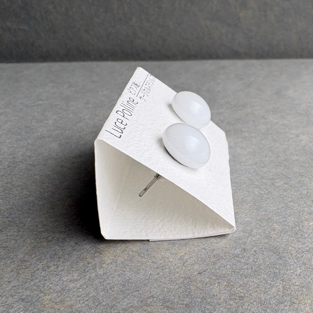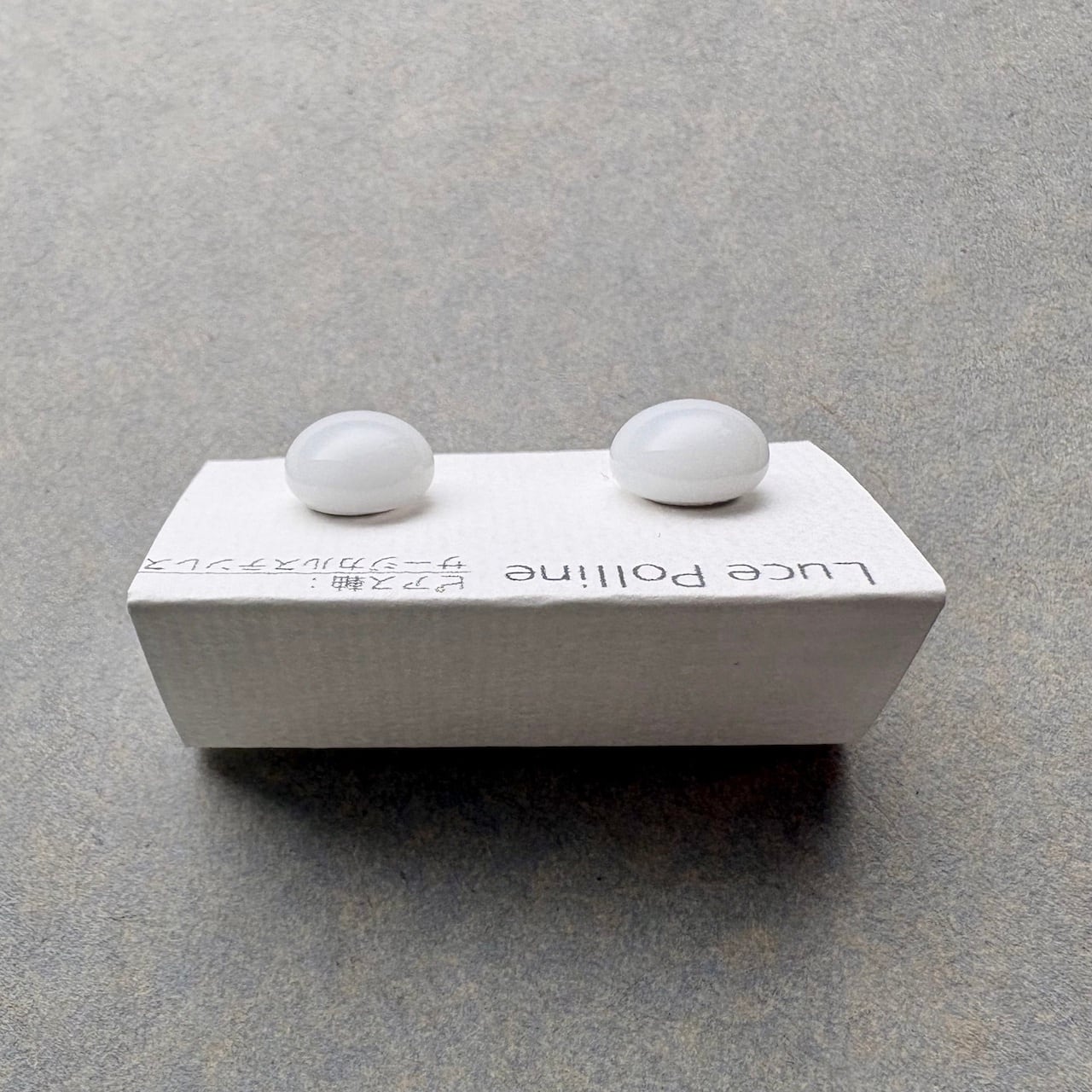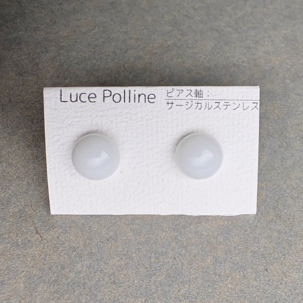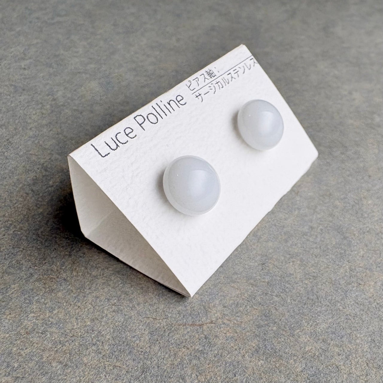 不透明な真っ白なガラスの粒をピアスにしました。
