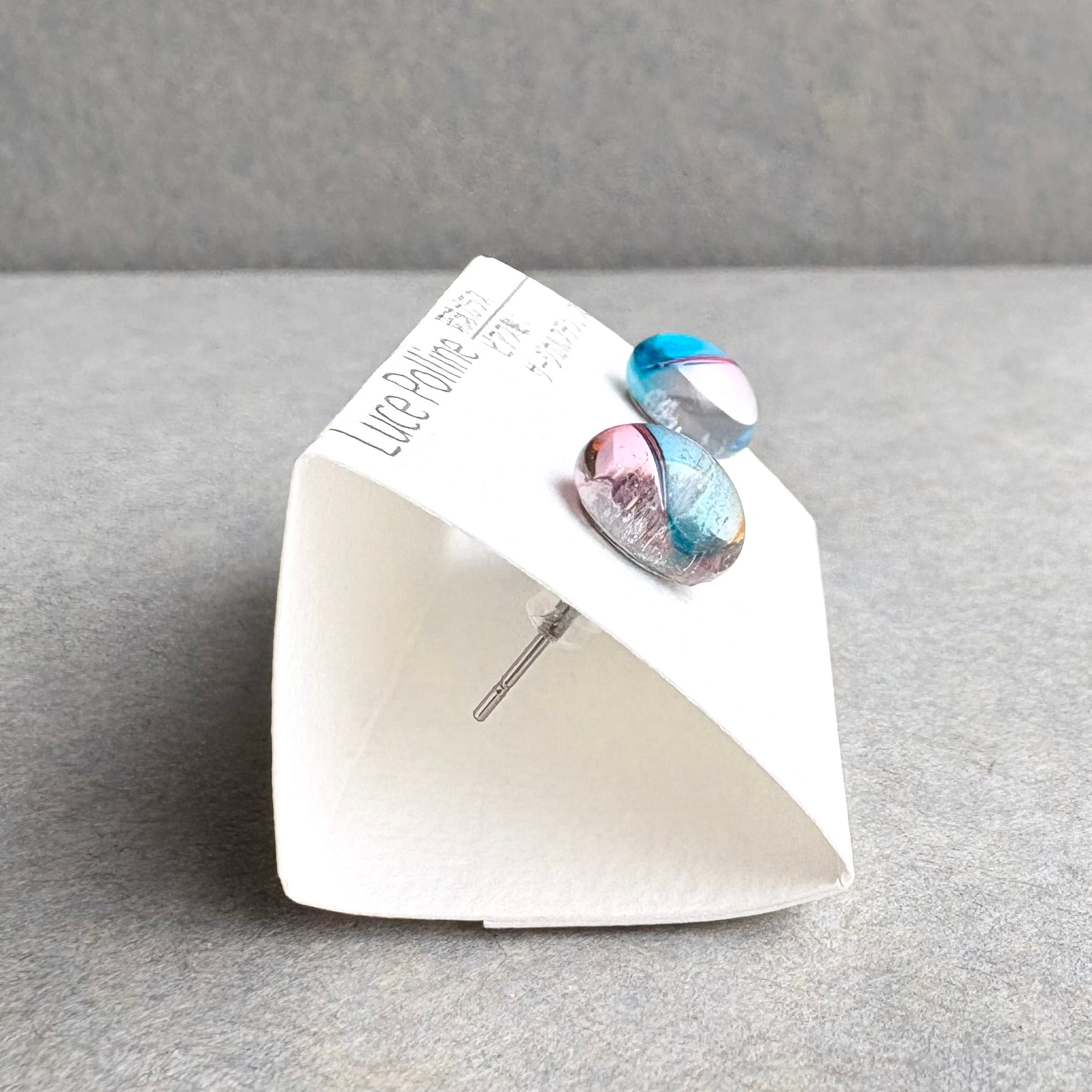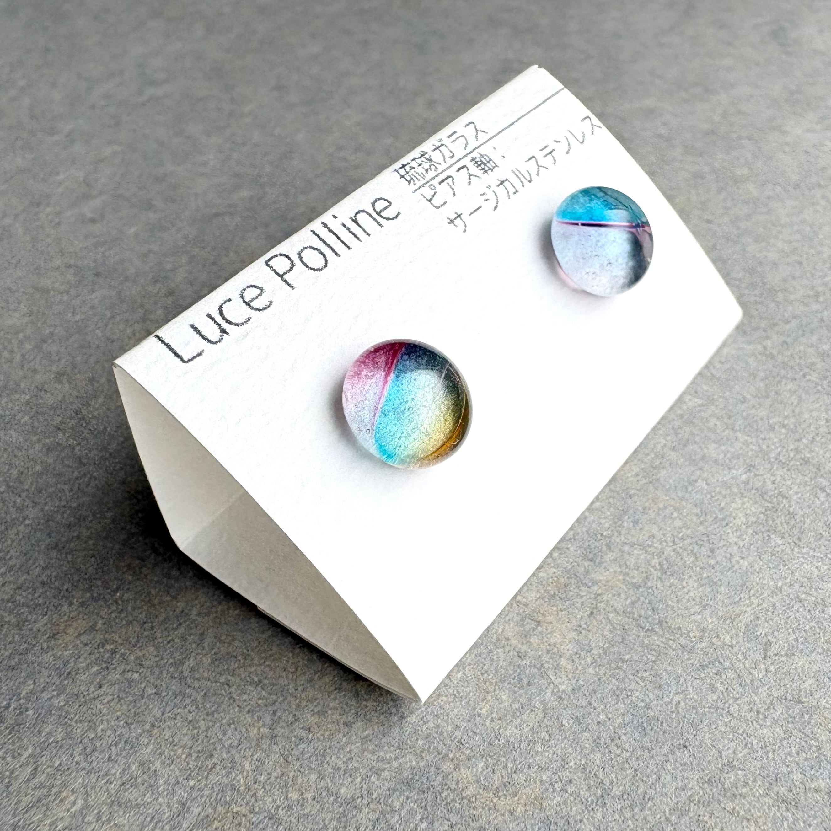 個性的な琉球ガラスの粒をピアスに仕立てました。