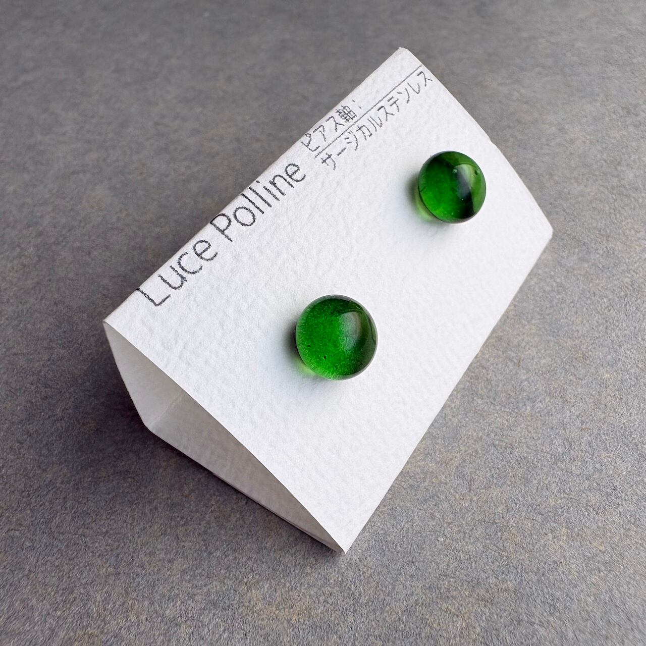 個性的なガラスの粒をピアスに仕立てました。