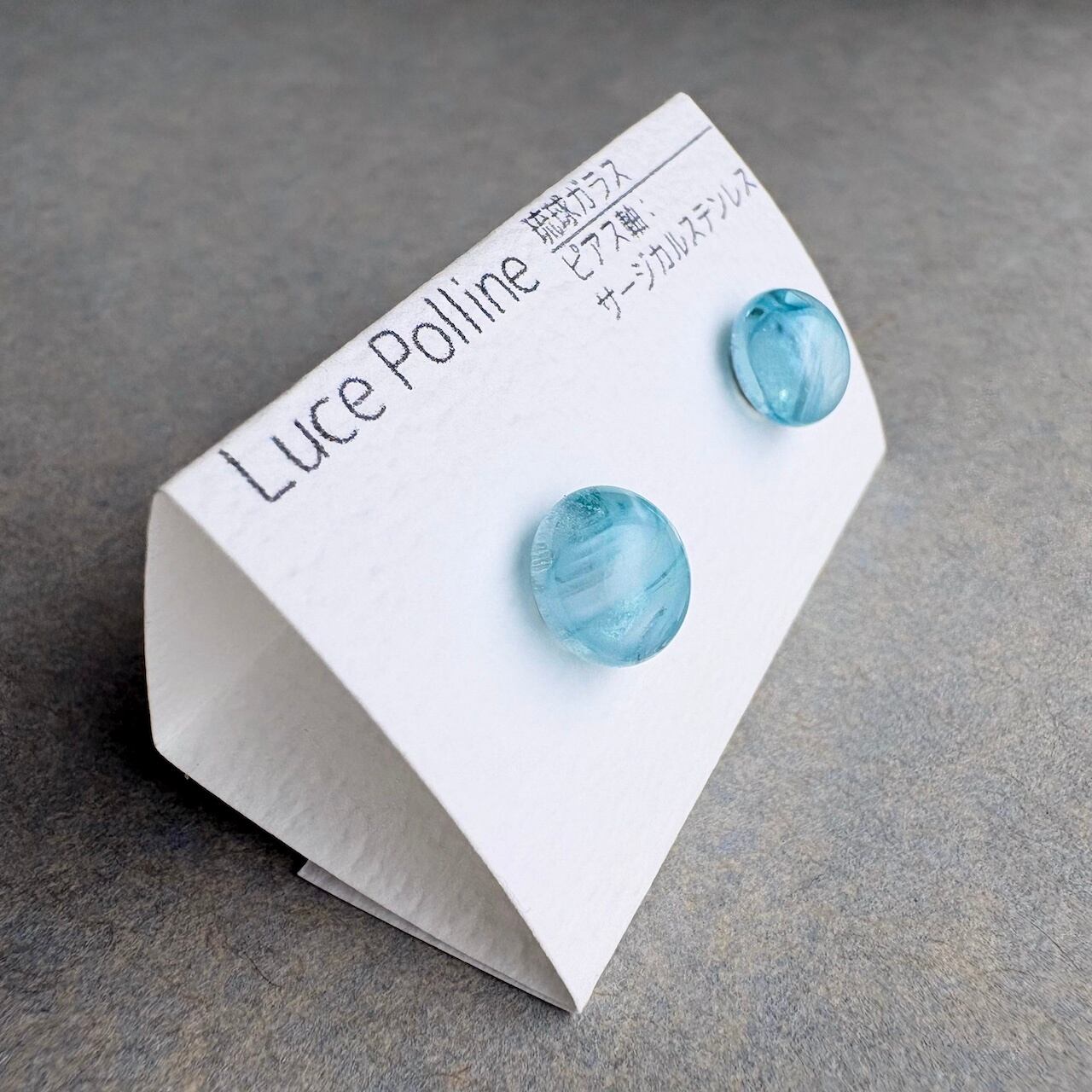 個性的な琉球ガラスの粒をピアスに仕立てました。