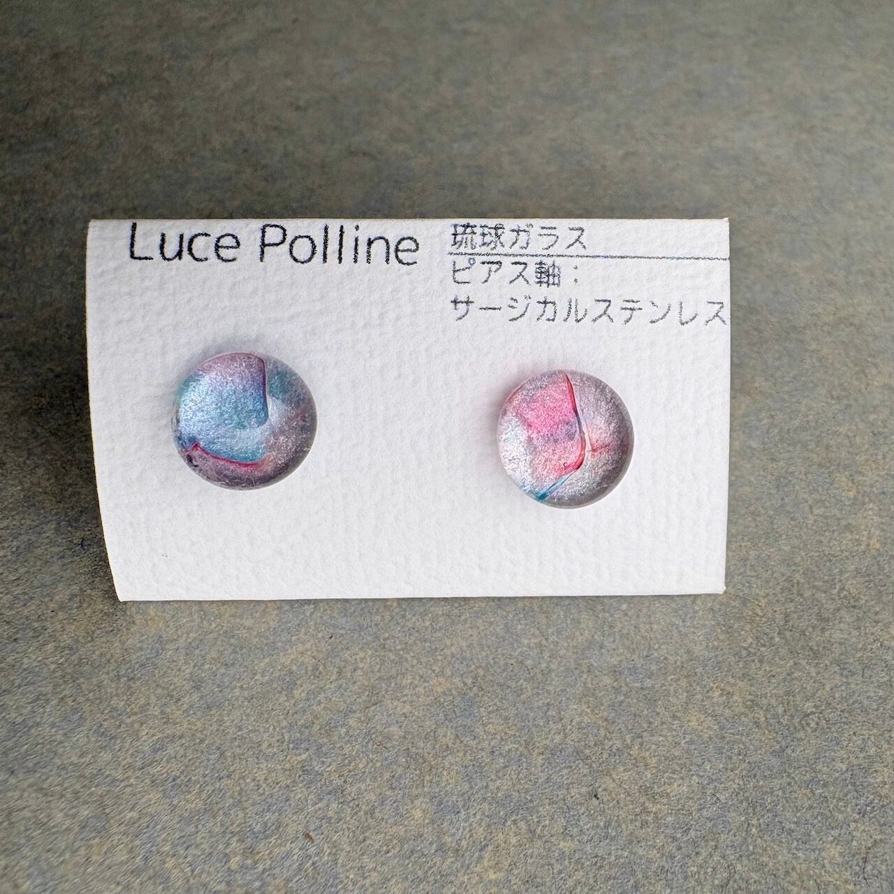 個性的な琉球ガラスの粒をピアスに仕立てました。