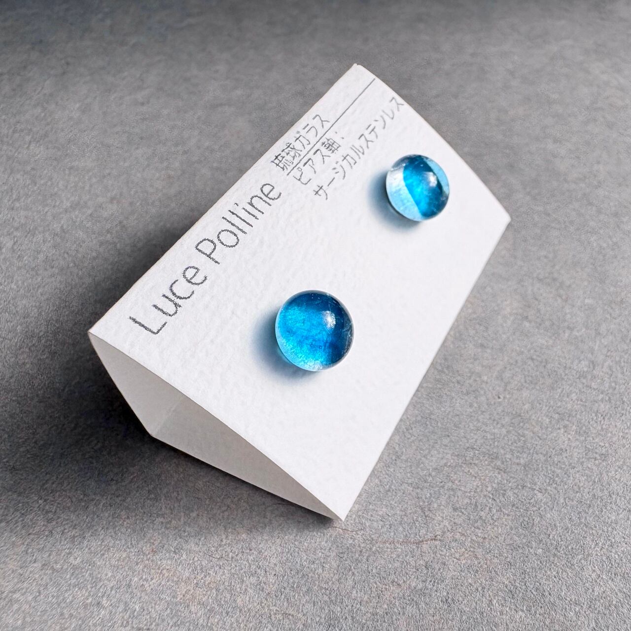 個性的な琉球ガラスの粒をピアスに仕立てました。
