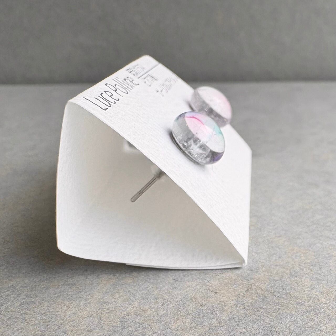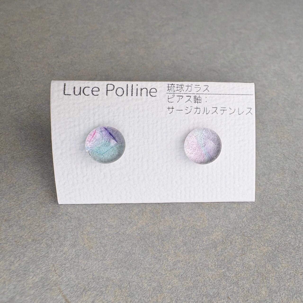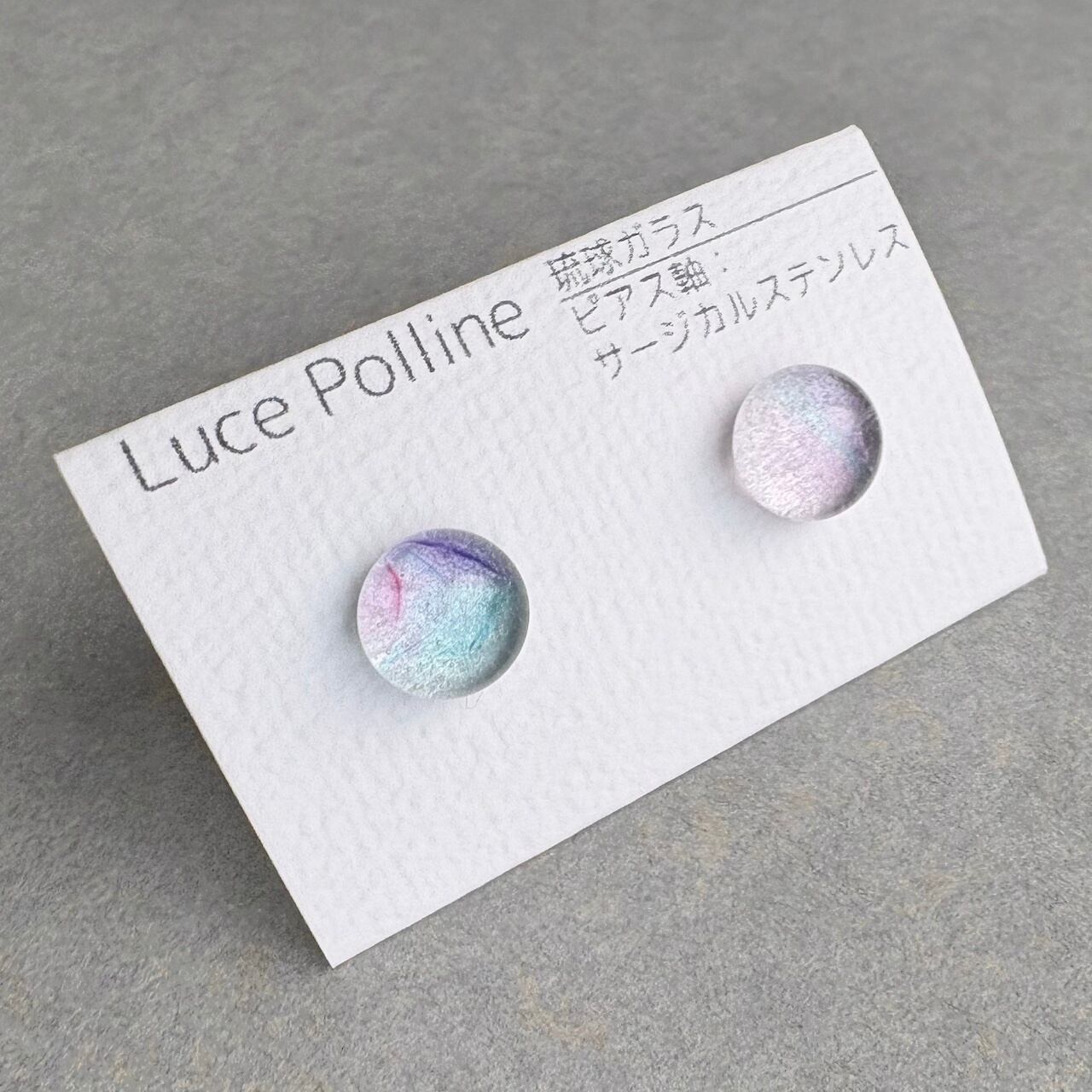 淡い色が交じる琉球ガラスの粒をピアスに仕立てました。