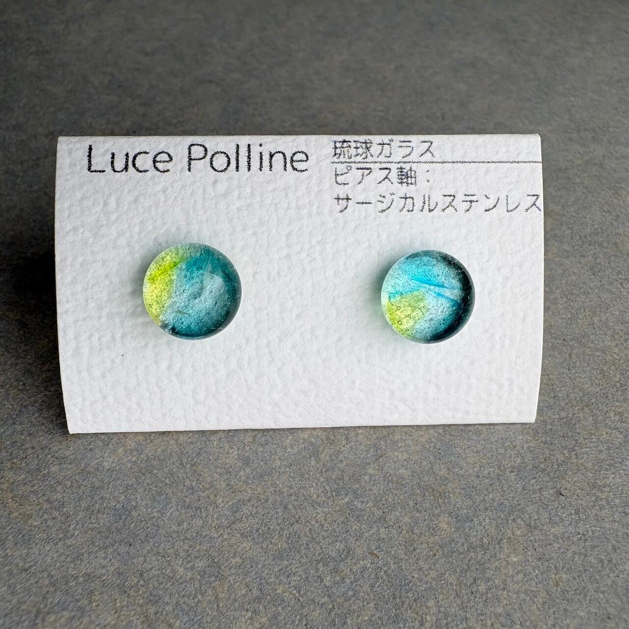 透明感のある清々しい色味の個性的な琉球ガラスの粒をピアスに仕立てました。