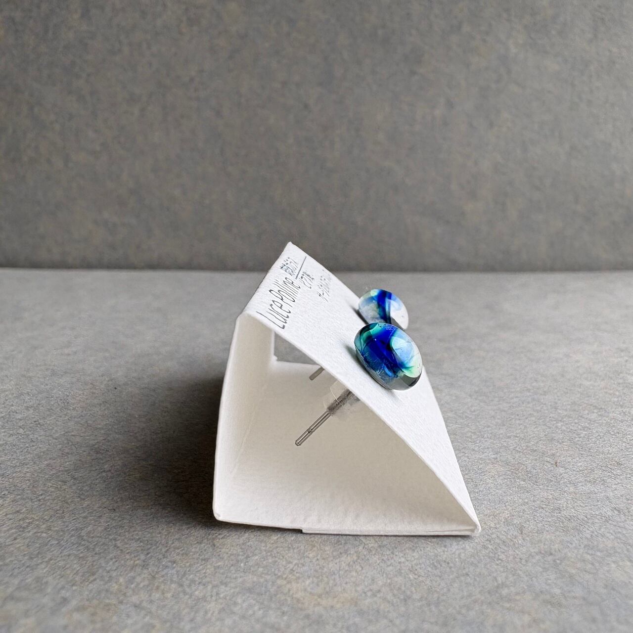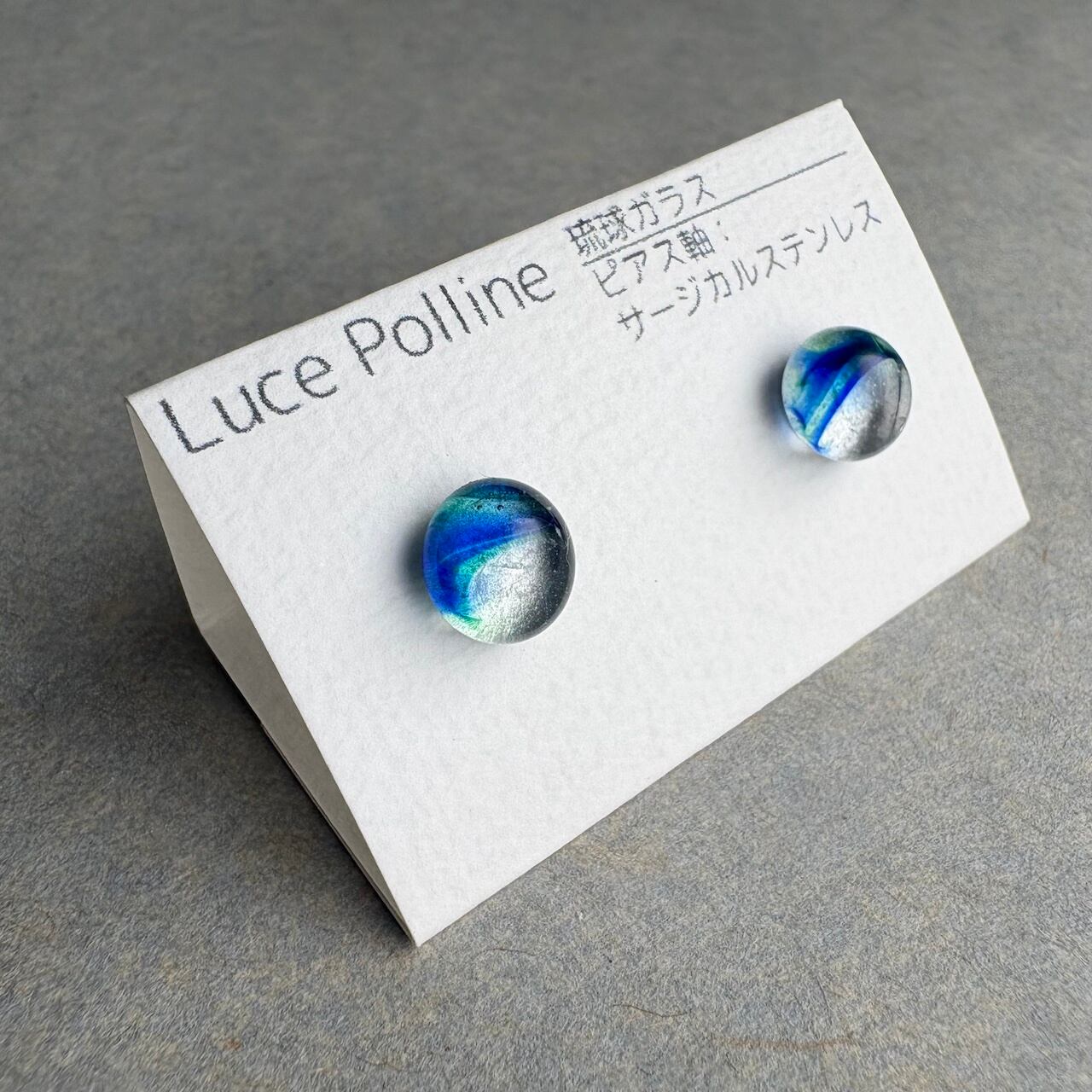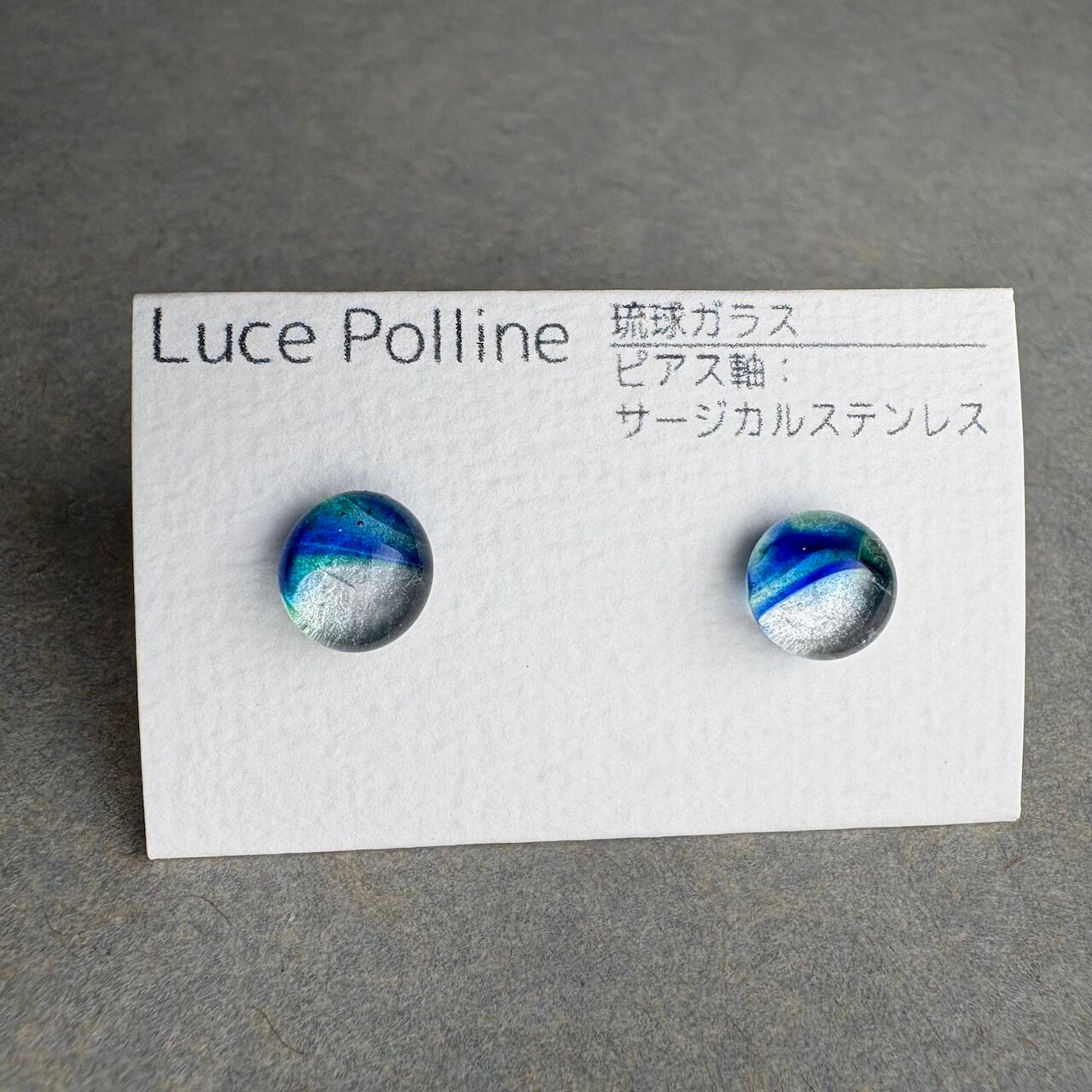 透明感のある清々しい色味に細かい気泡を含んだ個性的な琉球ガラスの粒をピアスに仕立てました。