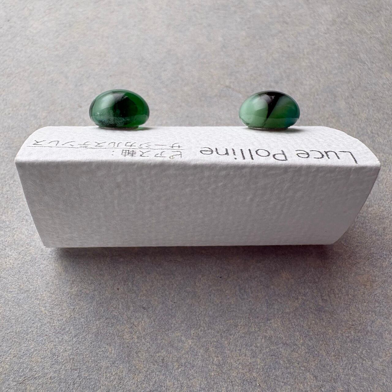 緑色の輸入ガラスを組み合わせてデザインしたガラスの粒が出来ました。