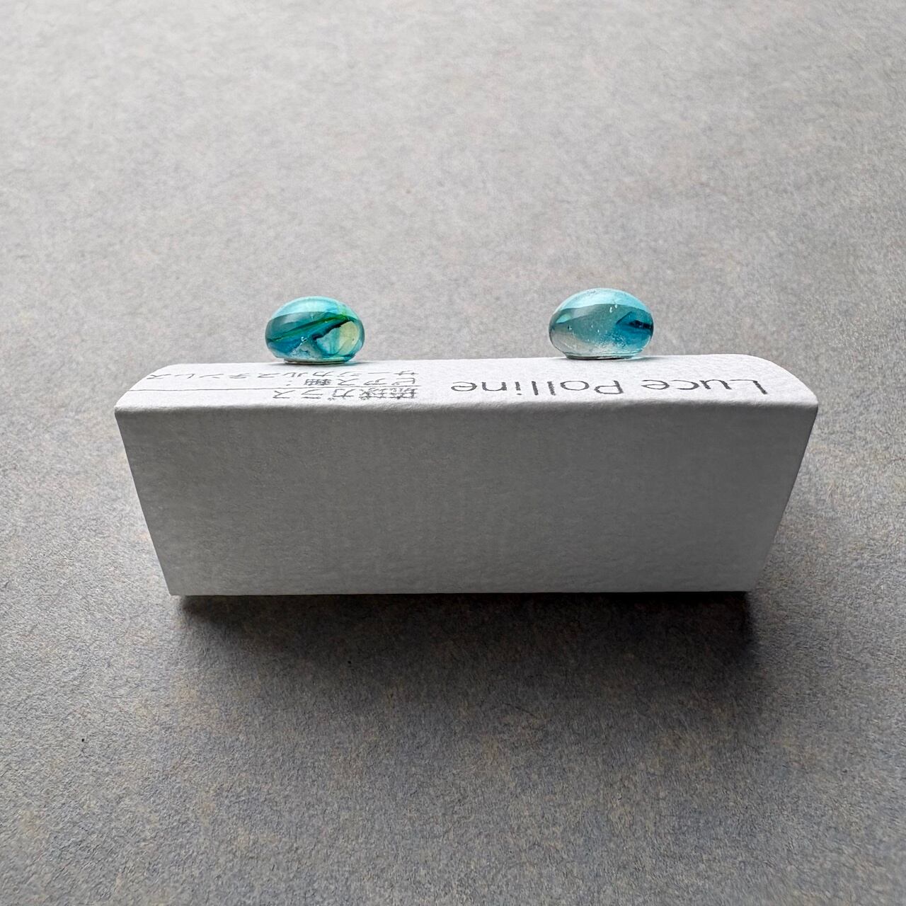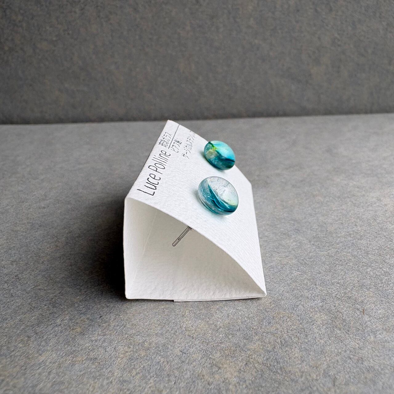 複雑な色合いの個性的な琉球ガラスの粒をピアスに仕立てました。