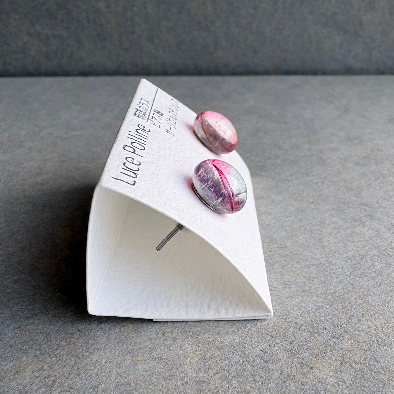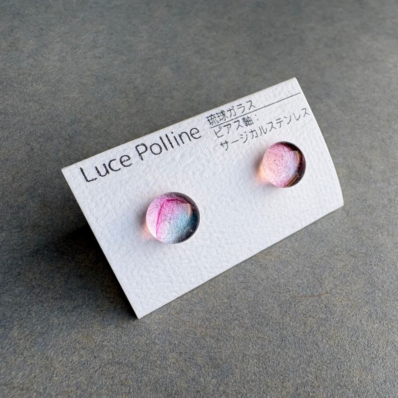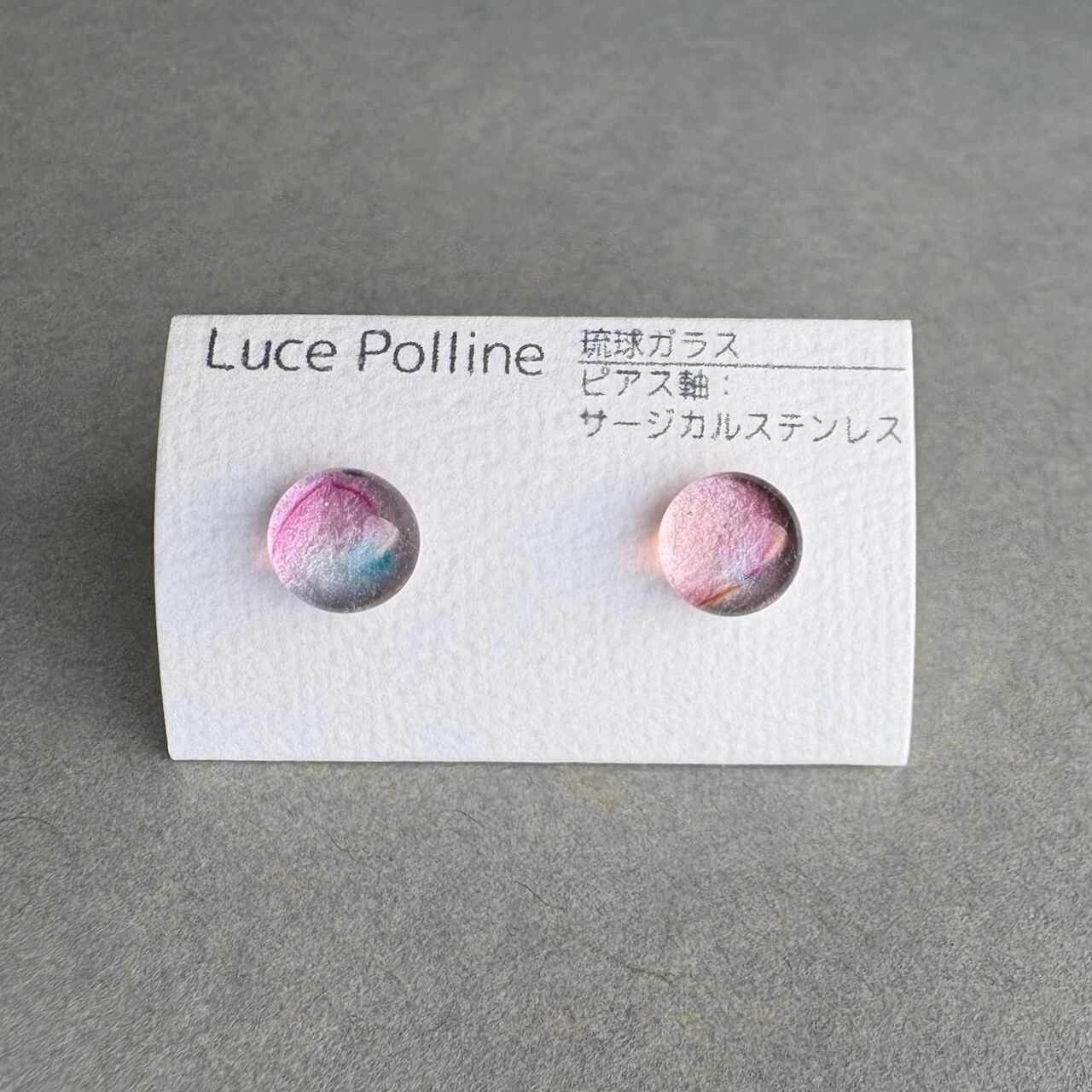 複雑な色合いの個性的な琉球ガラスの粒をピアスに仕立てました。