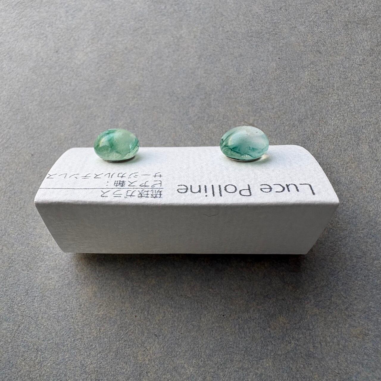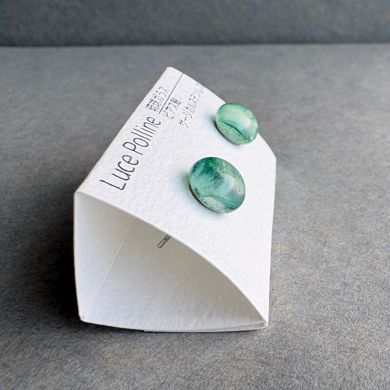複雑な色合いの個性的な琉球ガラスの粒をピアスに仕立てました。