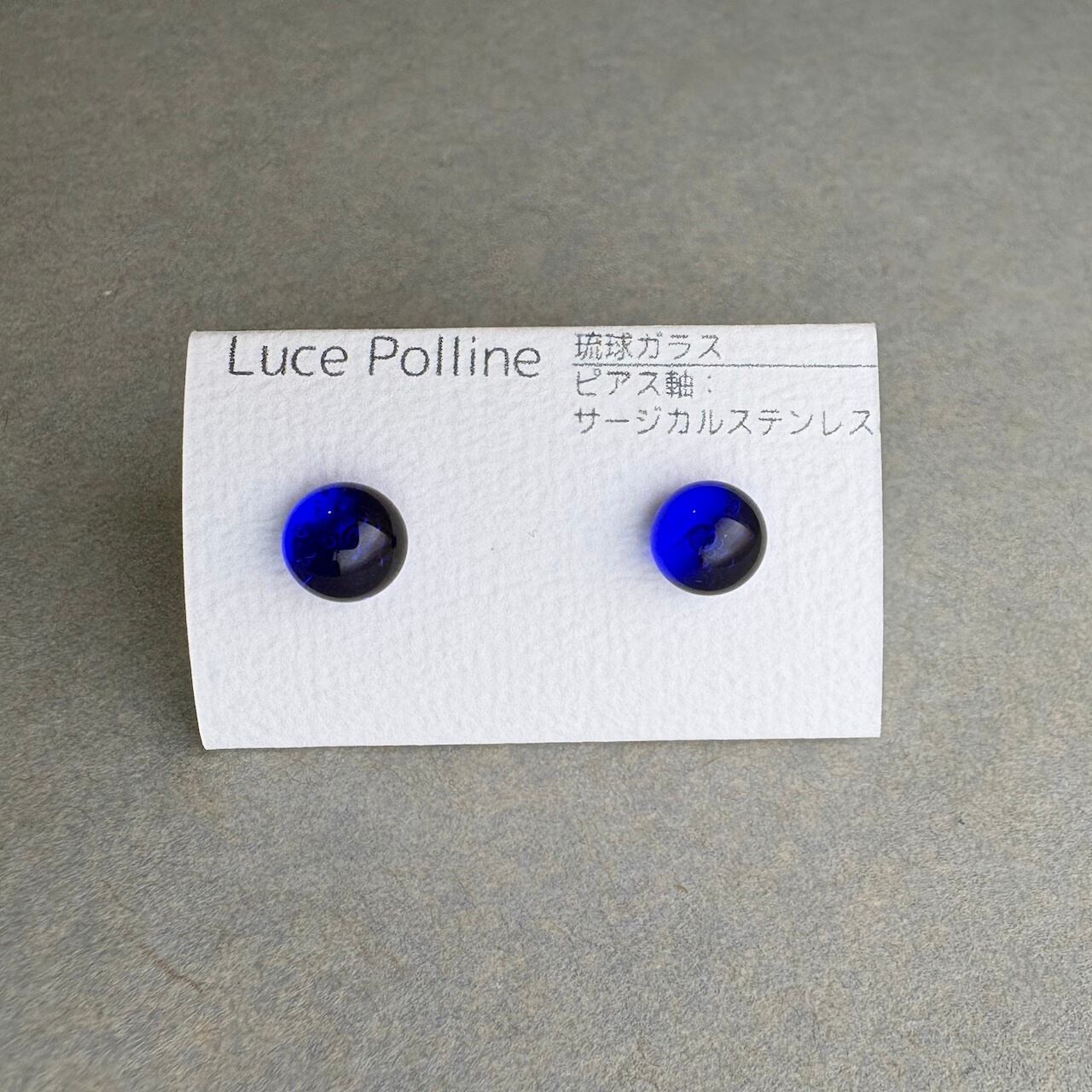 濃い青の琉球ガラスの粒をピアスに仕立てました。